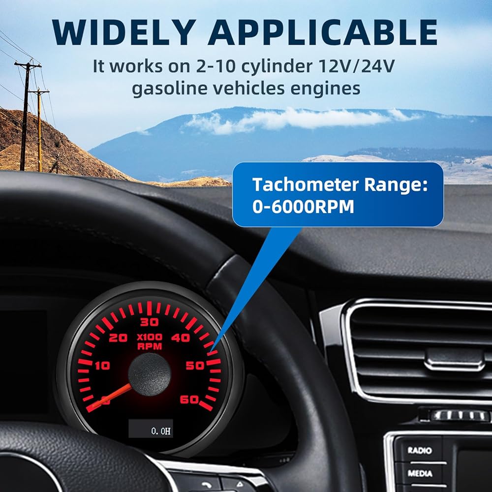 • 【الميزات: مقياس سرعة الدوران مناسب للسيارة 12/24 فولت / الشاحنة / القارب / محرك مولد الديزل / محرك البنزين، مناسب لمحركات الأسطوانة 2/4/6/8/10/12. دقة عرض المقياس واستقراره، استهلاك منخفض للطاقة