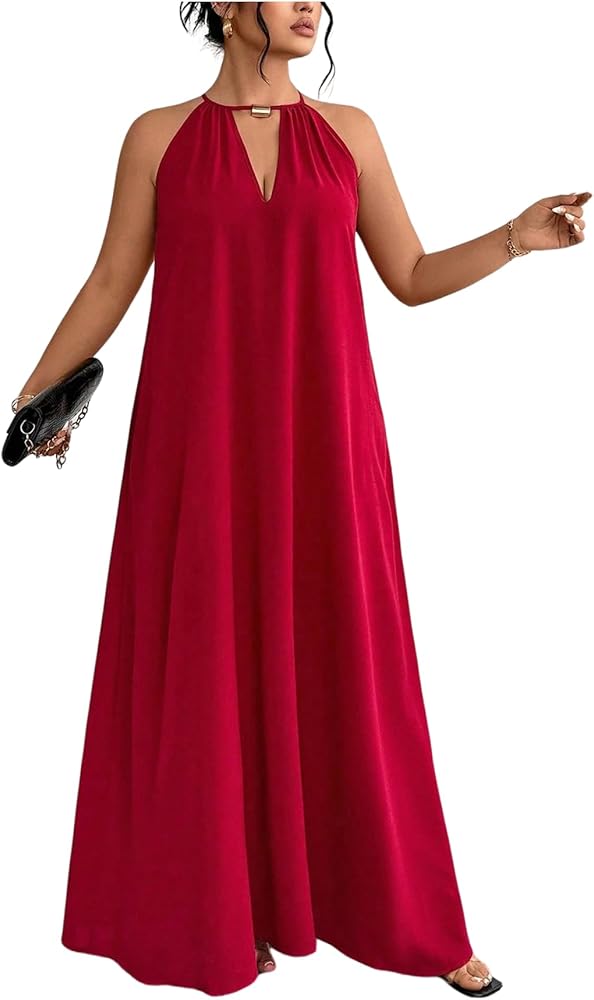 • Feature: Cut Out, Sleeveless, Long Length, Halter Dresses for Women