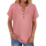 قمصان نسائية قصيرة الأكمام من rosemia، رقبة على شكل حرف V، بلوزات كاجوال صيفية فضفاضة مناسبة من Henley in Kuwait