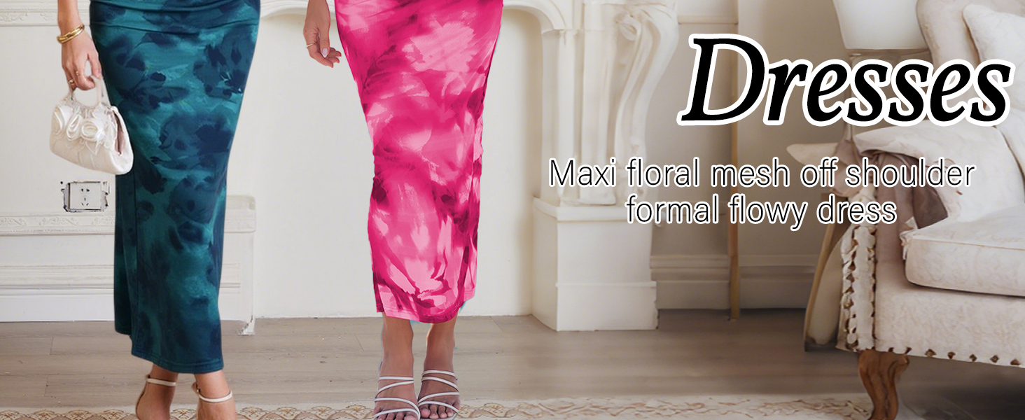 فستان ماكسي شبكي بطبعات الأزهار: مصنوع من قماش شبكي ناعم وقابل للتمدد، تصميم زهور بألوان زاهية، وخصر مكشكش لتعزيز محيط الخصر، وبطانة قطنية. هذا الفستان المطبوع بالزهور سيبقيك أنيقًا وفي مركز الاهتمام.