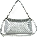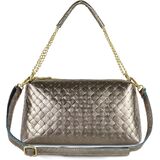 MADE IN ITALY HANDBAG. This ladies' handbag blends a compact 10.6" rectangular frame with 2 zip compartments and a lustrous metallic finish. It offers high-end craftsmanship in a lightweight form.