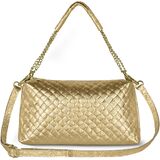 LUMINOUS EVERYDAY STYLE. This versatile crossbody adds a luxe accent to both casual and evening looks. Its medium size and woven metallic finish make it ideal for dinners, events, or city outings.