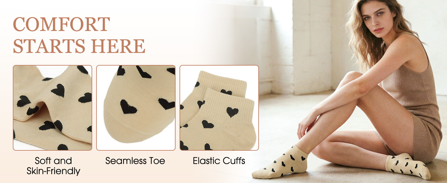 This womens ankle socks is made with a carefully selected high content of combed cotton combined with elastic fibers; It feels as soft and comfortable as the second layer of skin; The womens cotton socks have excellent stretchability and resilience, and they won't become loose or cause pressure on the ankles even after being worn for a long time