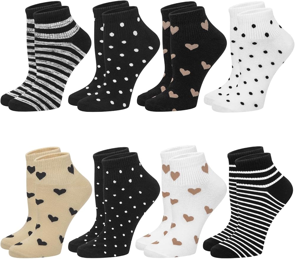 8 Pairs Cotton Ankle Socks for Women, Breathable Novelty Funny Striped Dot Casual Cute Dress Socks