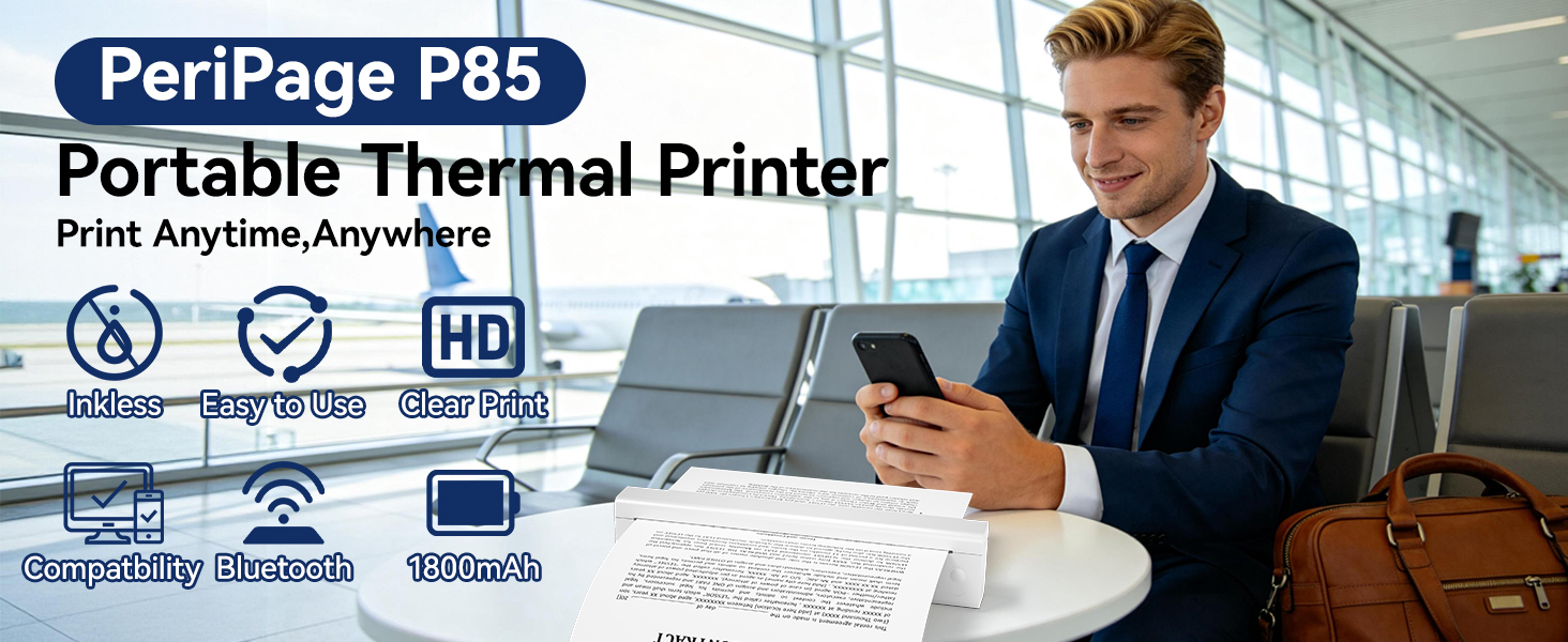 PERIPAGE P85 حصريًا وسهل الحمل - طابعة حرارية محمولة مقاس A4 أصلية من Peripage P85، تصميم نحيف وخفيف الوزن يناسب بسهولة حقائب الظهر أو الحقائب أو حقائب السفر. مثالية لرحلات العمل، والمكاتب المتنقلة، والعمل في الهواء الطلق، والمنزل، والمدرسة - احصل على الطباعة أثناء التنقل في أي وقت وفي أي مكان.