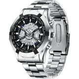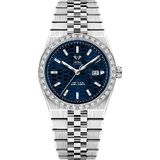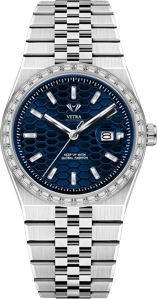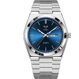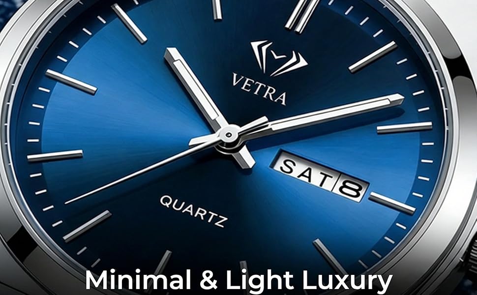 VETRA Men Watch Luxury Business Watches Multifunction Waterproof Luminous Blue Face Silver Stainless Steel Wrist Watches