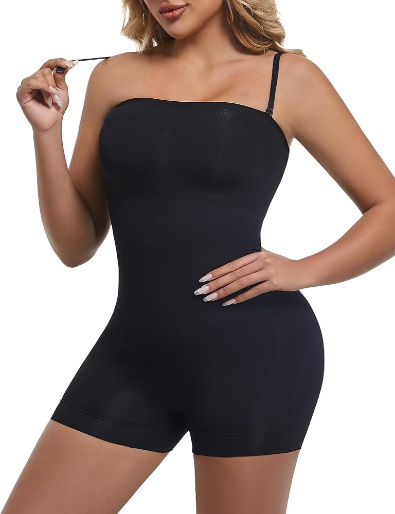 -This strapless shapewear bodysuit,specially designed with adjustable and detachable straps without a shoulder neckline,strapless shapewear providing a variety of styling options for your outfit. Whether you prefer a strapless, halter or cross look, this shapewear shorts look is for you to choose.butt lifting shapewear,Design to show off your beautiful body proportions and make you look slimmer.
