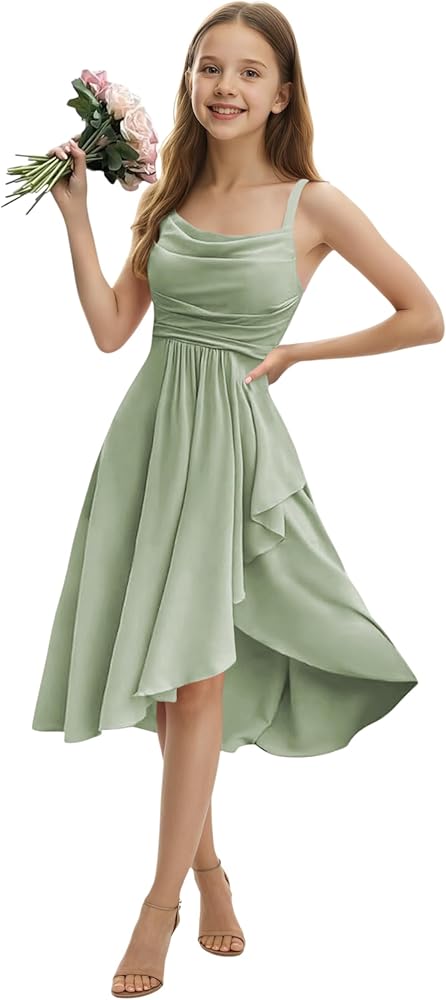 • المزايا: فستان وصيفة العروس الصغيرة على شكل حرف A للفتيات المراهقات، فستان فتاة الزهور برقبة دائرية، فستان رسمي للفتيات بدون أكمام، فستان وصيفة العروس الصغيرة بطول الركبة، شيفون مطوي، حزام سباغيتي، مقاس إضافي، مقاس صغير، سحاب خلفي، مبطن بالكامل مما يجعله مريحًا في الارتداء.