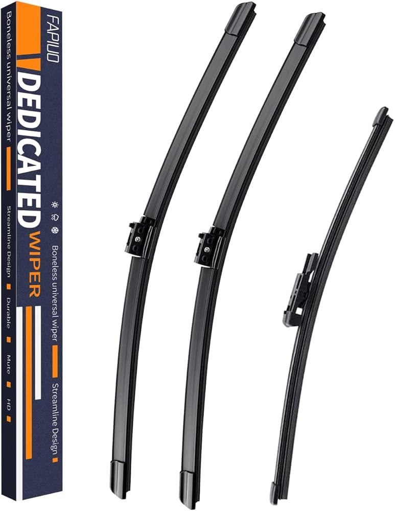 - - المواصفات: مجموعة شفرات ممسحة مكونة من 3 - محرك LH 24 بوصة، جانب الركاب RH 19 بوصة، شفرة ممسحة خلفية 12 بوصة
