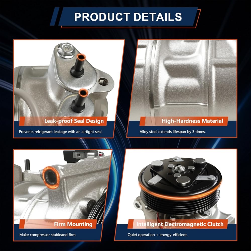 [فعال في استخدام الطاقة ومتين]: مصنوع من سبائك الألومنيوم عالية القوة، يعمل هذا الضاغط بأقل قدر من الضوضاء والاهتزاز من أجل تبريد موفر للطاقة. حافظ على سرعة قيادة ثابتة لتحسين كفاءة استهلاك الوقود. ويضمن هيكلها القوي أداءً موثوقًا ومتانة ممتدة.