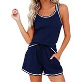 رقبة على شكل حرف U جذابة وتصميم عملي: يتميز بقميص كلاسيكي بدون أكمام برقبة على شكل حرف U يوفر المزيد من الراحة والحرية مقارنة برقبة دائرية. يأتي شورت البيجامة مع خصر برباط قابل للتعديل وجيبين جانبيين عميقين لهاتفك أو جهاز التحكم عن بعد أو الأشياء الصغيرة، ويجمع بين ملابس الاسترخاء الأنيقة والاستخدام اليومي العملي.