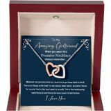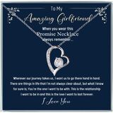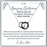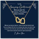 بطاقة رسالة: إلى MyAmazing Girlfriend - عندما ترتدين قلادة الوعد هذه، تذكري دائمًا؛؛؛ أينما تأخذنا رحلتنا، أريد أن نذهب إلى هناك يدًا بيد؛ هناك أشياء في الحياة لا أكون واضحًا بشأنها دائمًا، لكن ما أعرفه على وجه اليقين هو؛ أنت من أريد أن أكون معه؛ هذه هي العلاقة التي أريد أن أكون فيها وهذا هو الحب الذي أريد أن يستمر إلى الأبد؛ أحبك