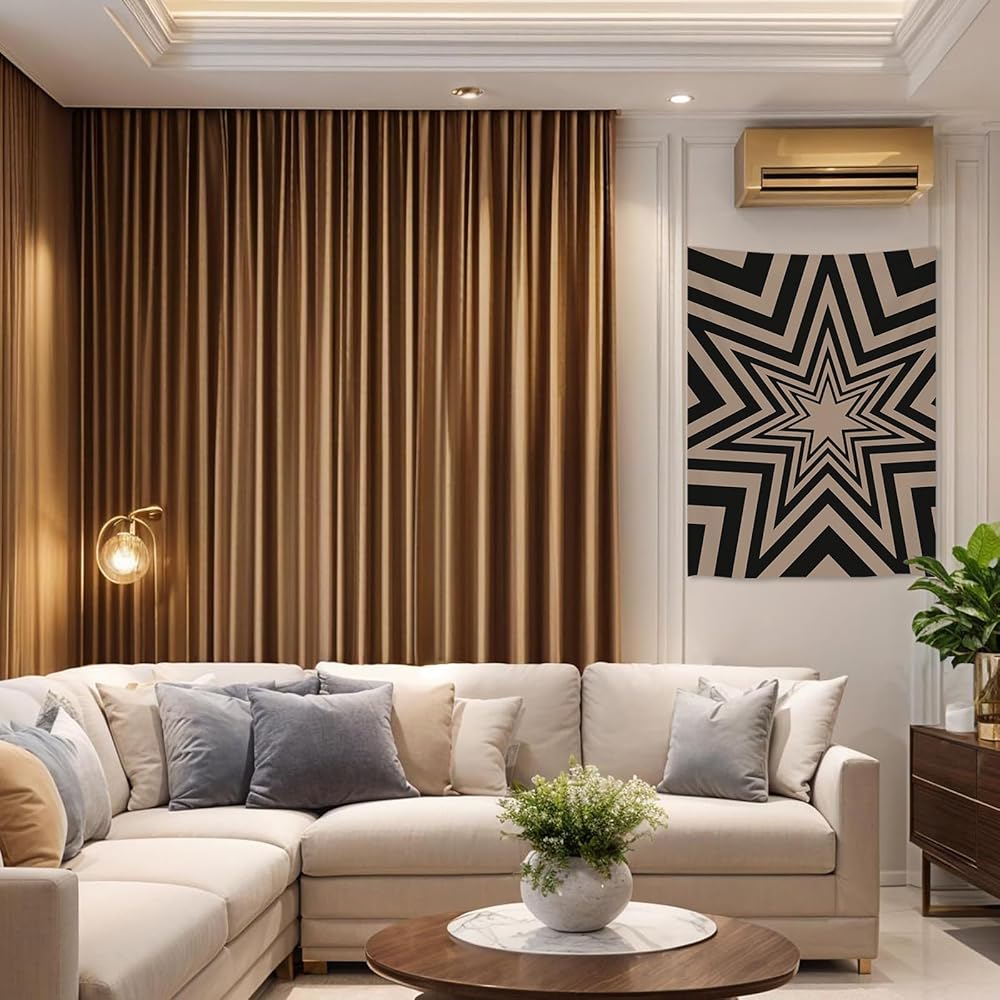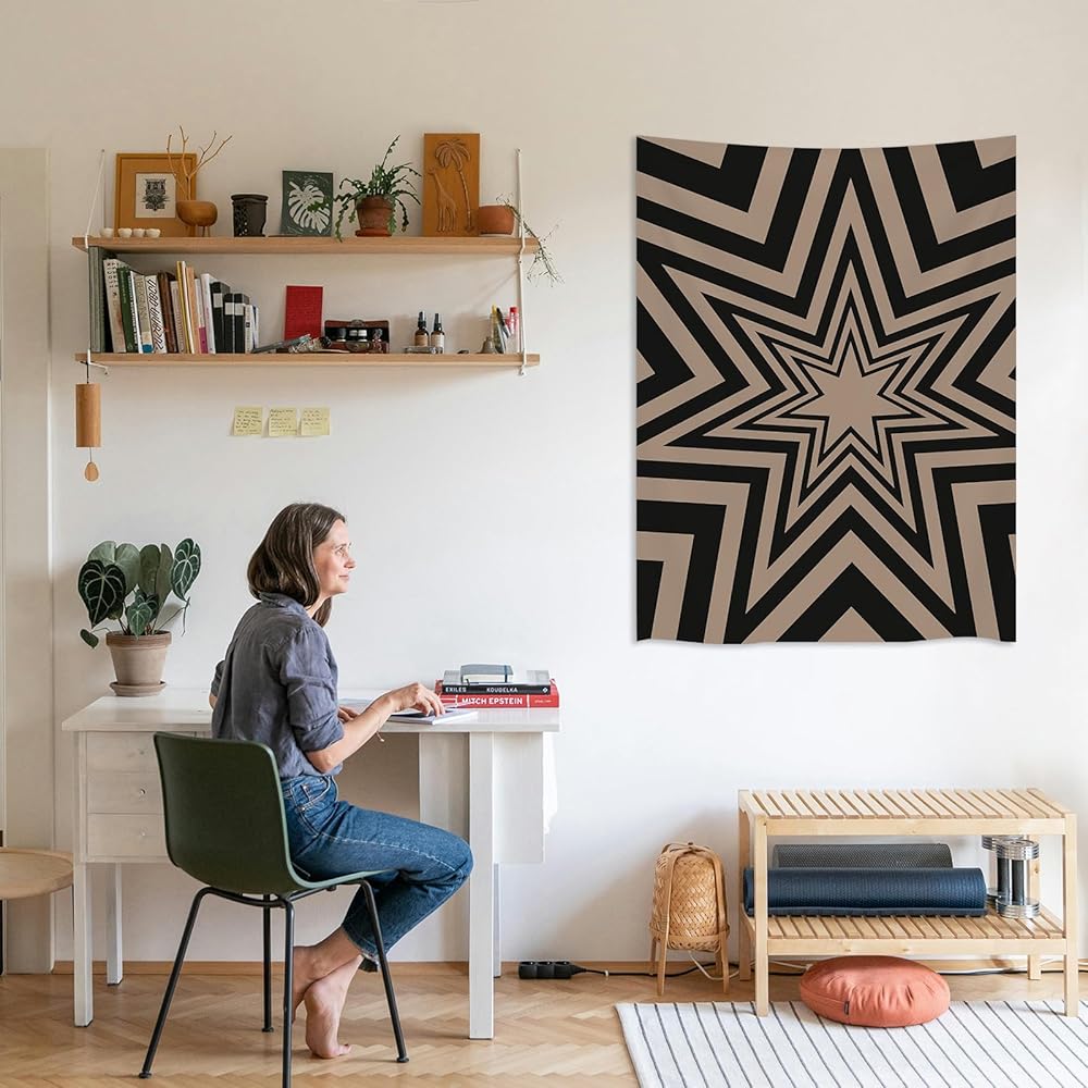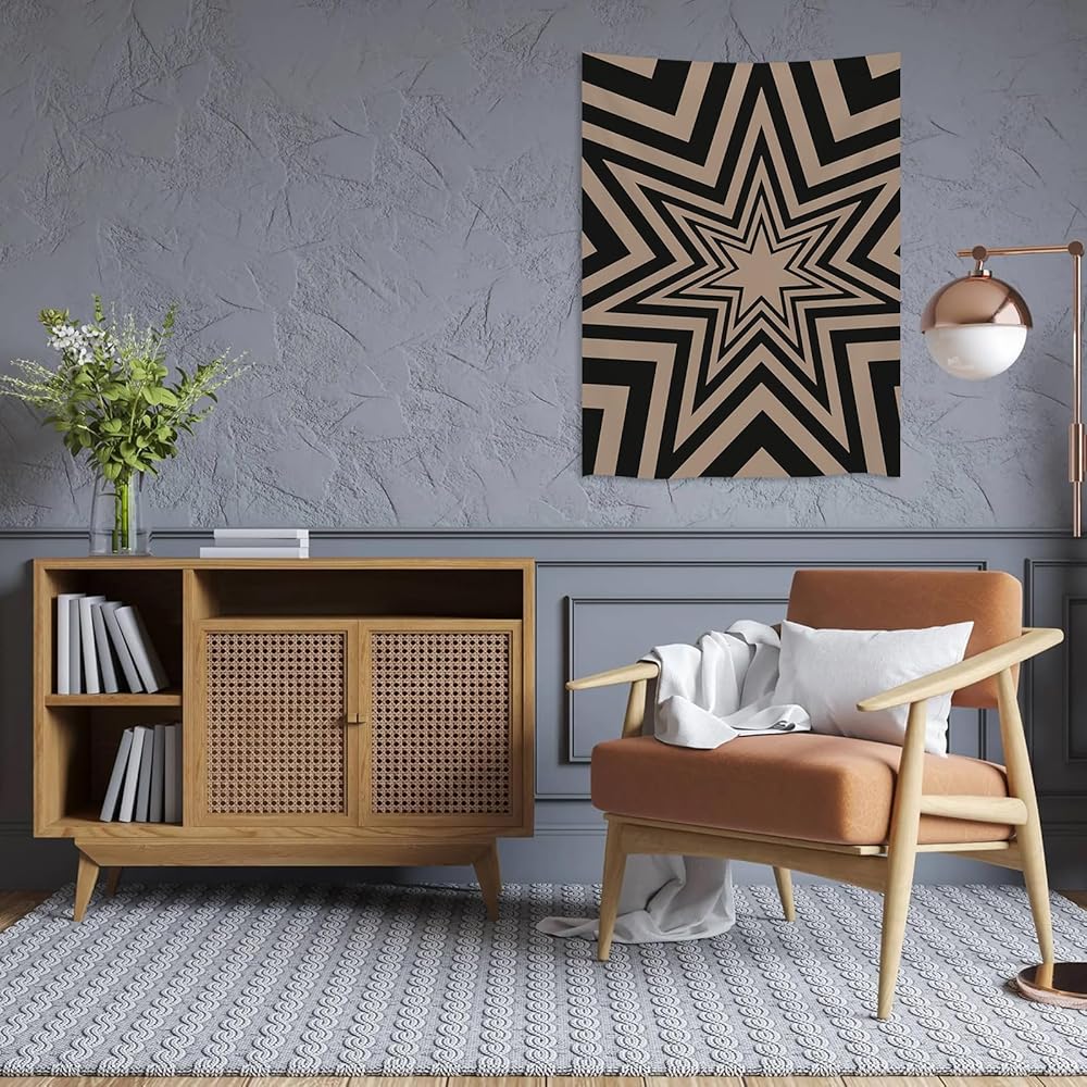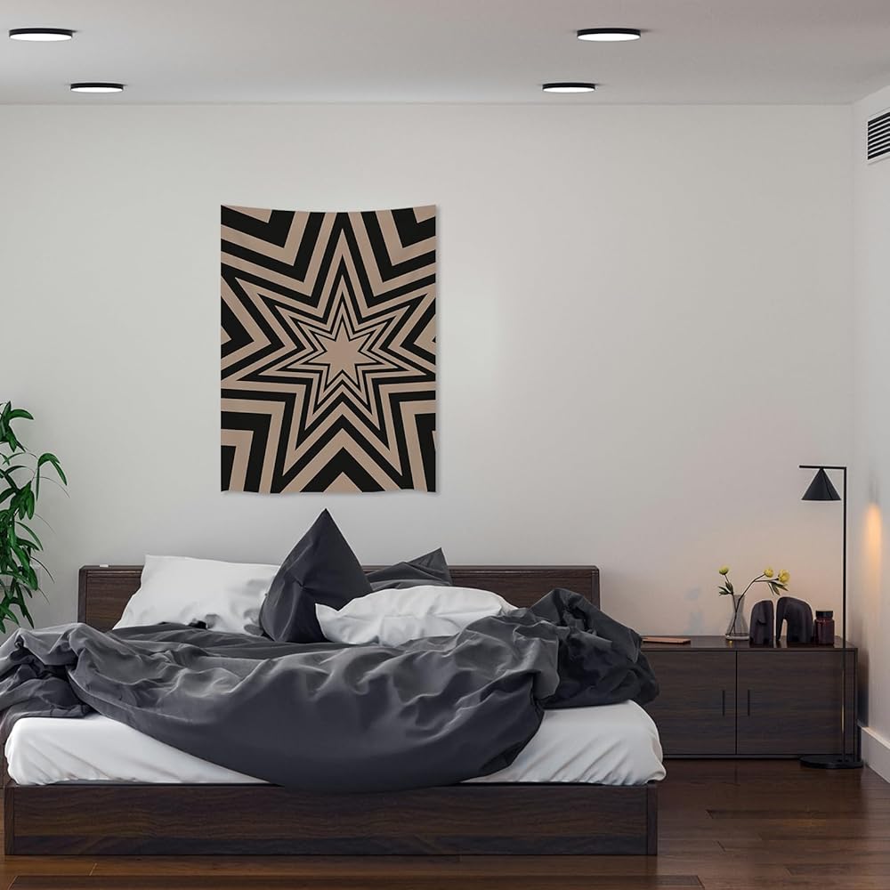 الأسود والبيج هندسية نجمة نسيج Y2K الجمالية وسط المدينة فتاة الجدار شنقا خمر العصرية الهبي جدار الفن للنساء الفتيات هدية غرفة المعيشة غرفة نوم جدار ديكور 40x60 بوصة