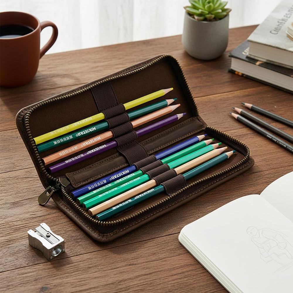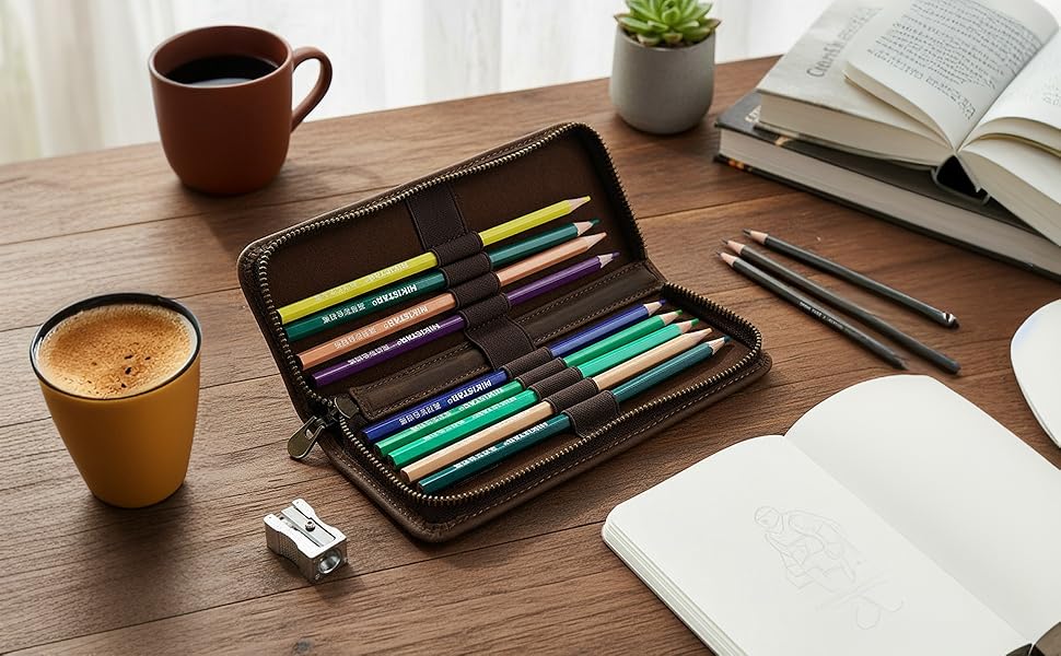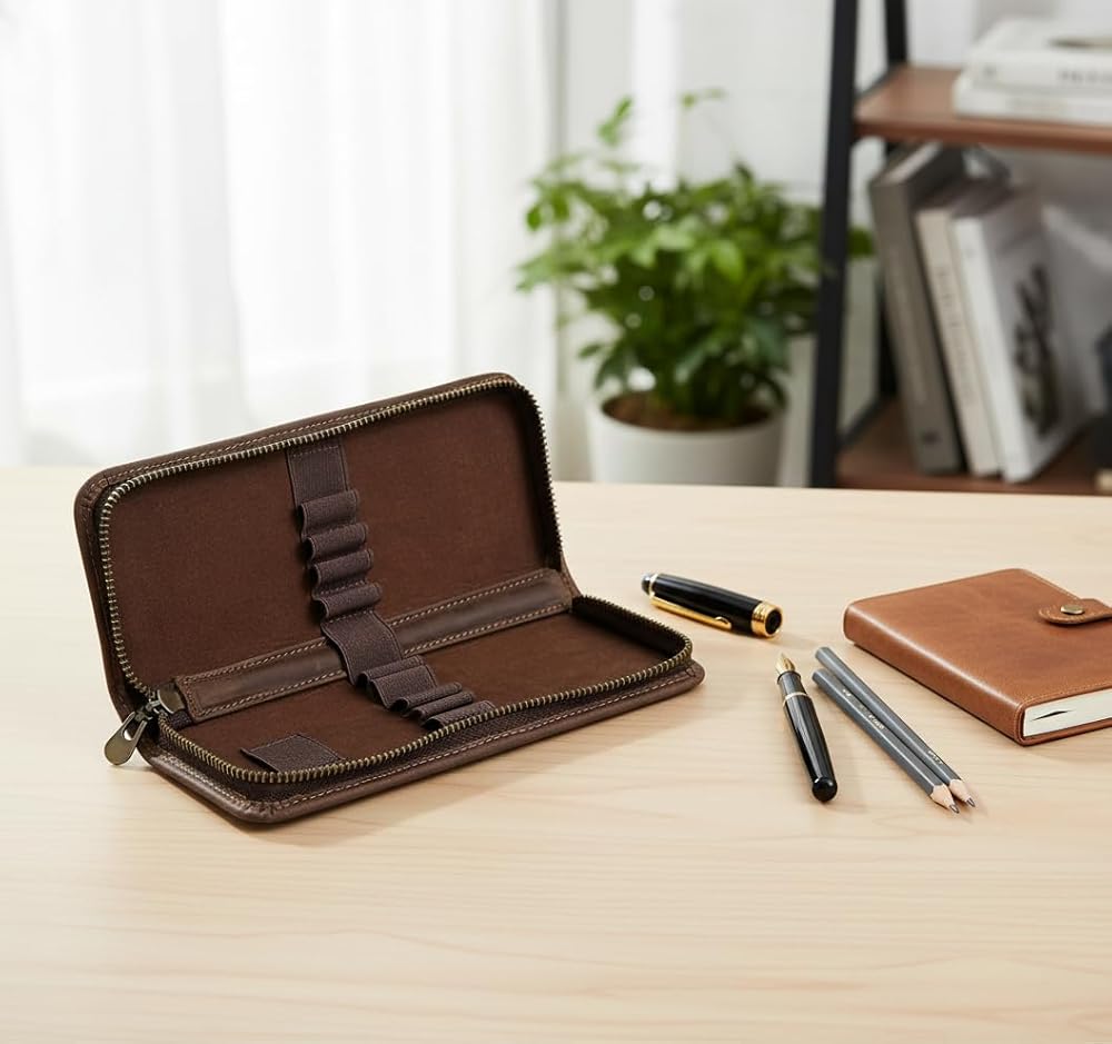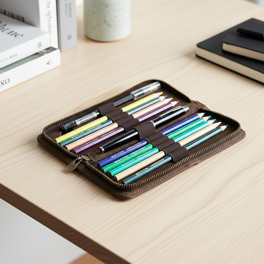 【أنيقة عالميًا للجميع】تتميز حقائب أقلام الرصاص المصنوعة من الجلد الأصلي لدينا بأنها متينة ولها مظهر بلون القهوة وهو كلاسيكي وراقي، مما يجعلها الخيار الأمثل للرجال والنساء من جميع الأعمار. إنها الهدية المثالية لأيام العودة إلى المدرسة، أو التخرج، أو أعياد الميلاد، أو غيرها من العطلات، كما أنها مثالية للاستخدام الشخصي.