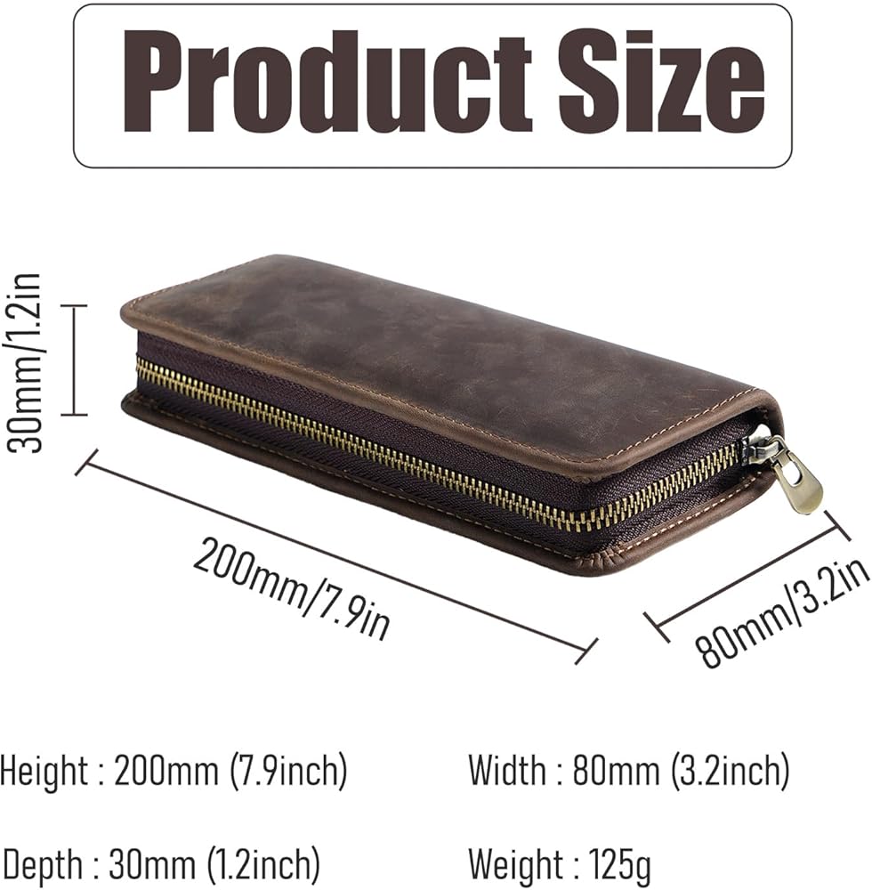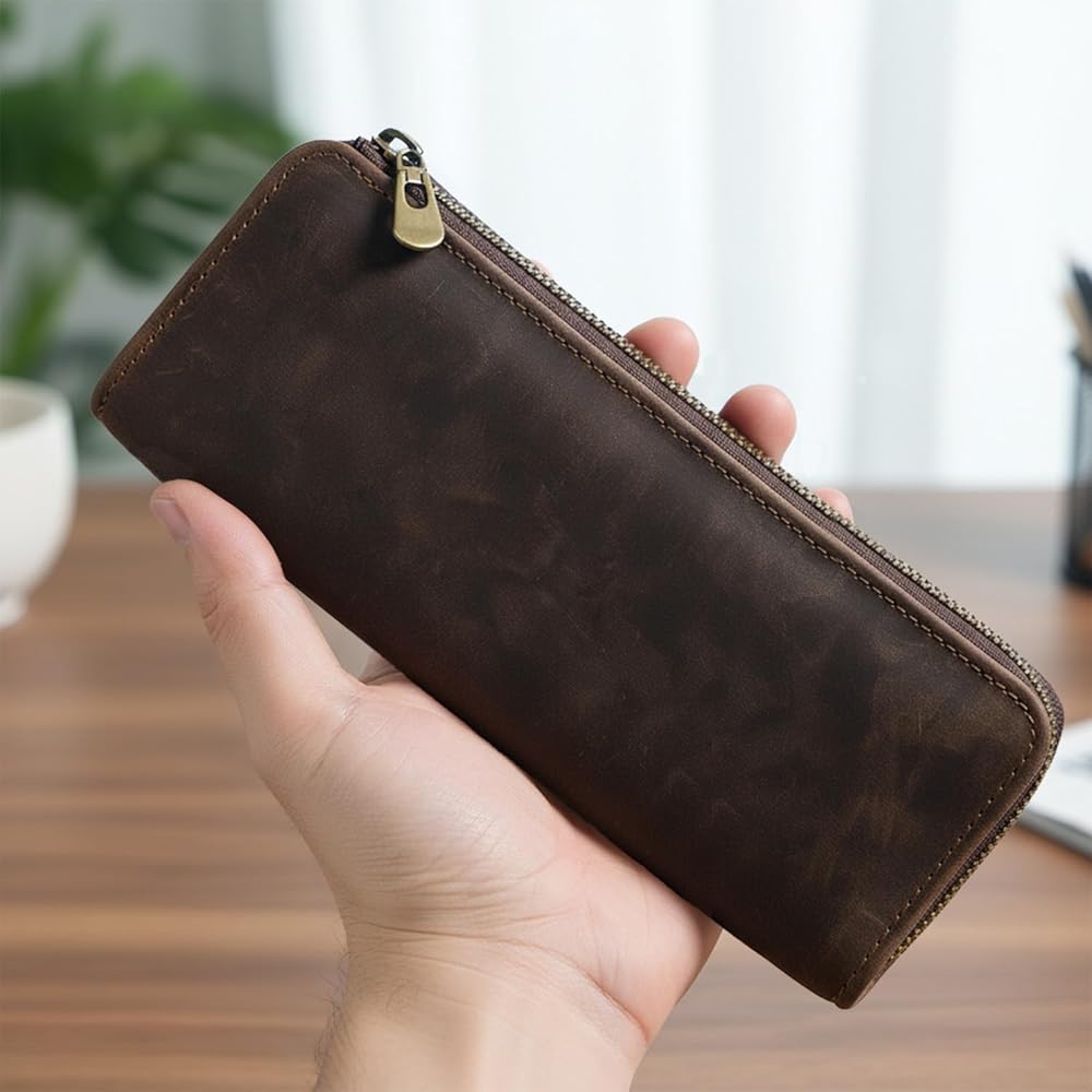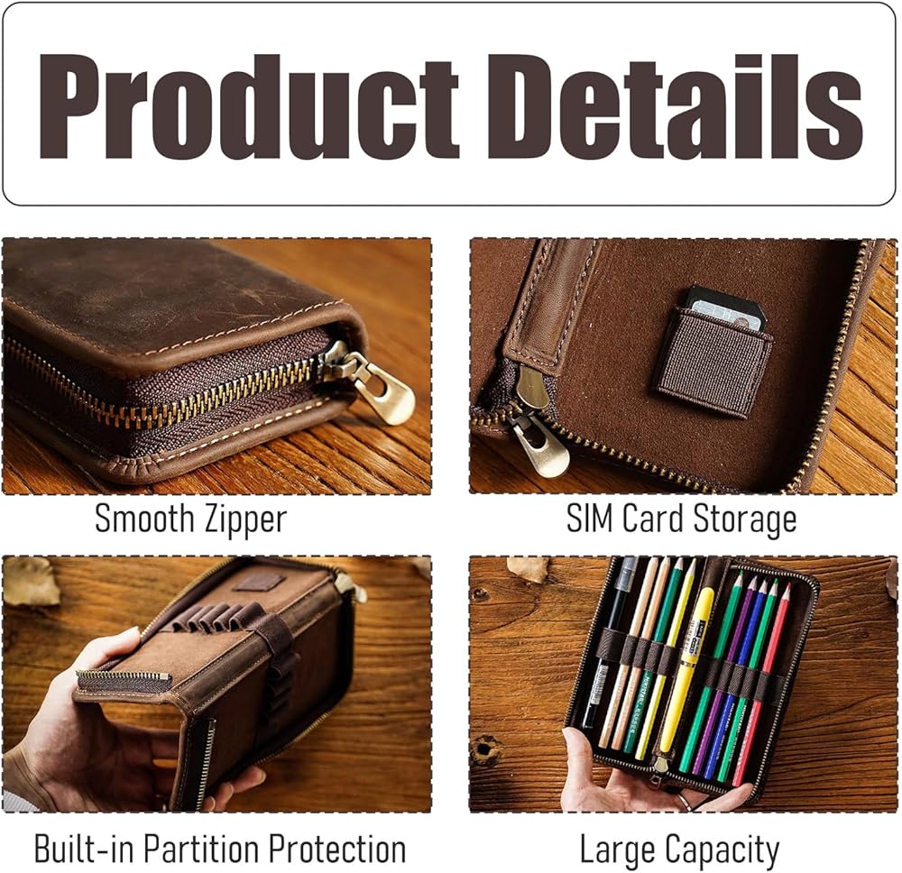 【مواد عالية الجودة】حقيبة القلم هذه مصنوعة من مادة جلدية أصلية عالية الجودة وتأتي مع سحاب معدني متين من أجل السلامة والمتانة. البطانة الداخلية ناعمة لحماية أدوات الكتابة الخاصة بك، لذلك يمكنك استخدامها بثقة.