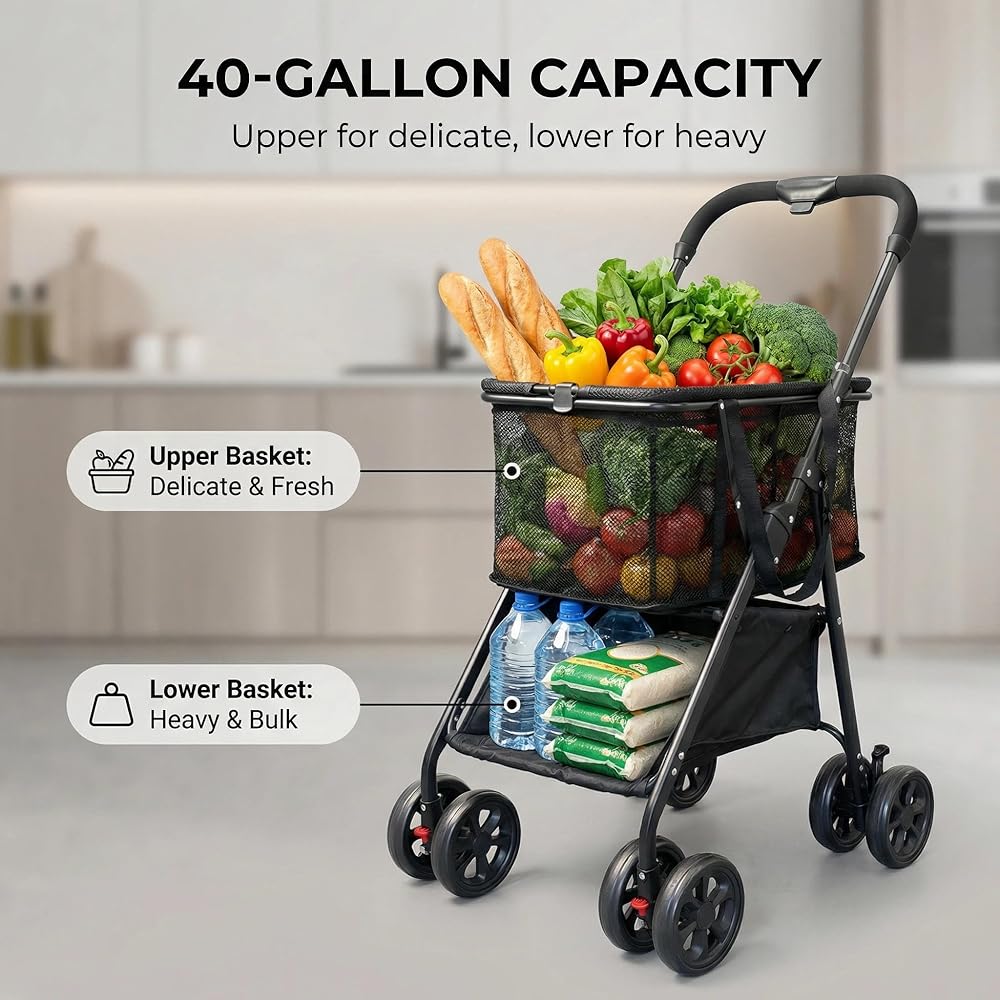 This is more than a grocery cart; it's your daily life assistant. Ideal for weekly supermarket runs, trips to the farmer's market, handling laundry loads, or even as a camping gear hauler. The comfortable foam-padded handle makes every journey comfortable.
