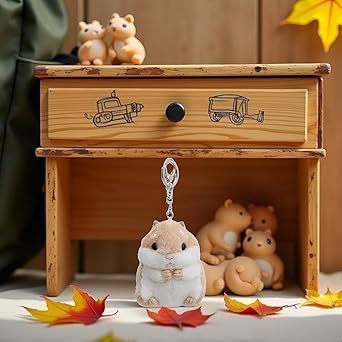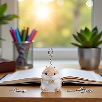 سلسلة مفاتيح هامستر قطيفة، كاكي، حلية حيوانات محشوة لحقيبة الظهر، المحفظة، حقيبة اليد، مفاتيح السيارة