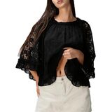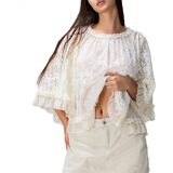 قميص نسائي بوهو من الدانتيل المتدفق بأكمام واسعة وكشكشة شفافة غير رسمية فضفاضة شفافة لتغطية بلوزة الصيف ملابس الشاطئ in Kuwait
