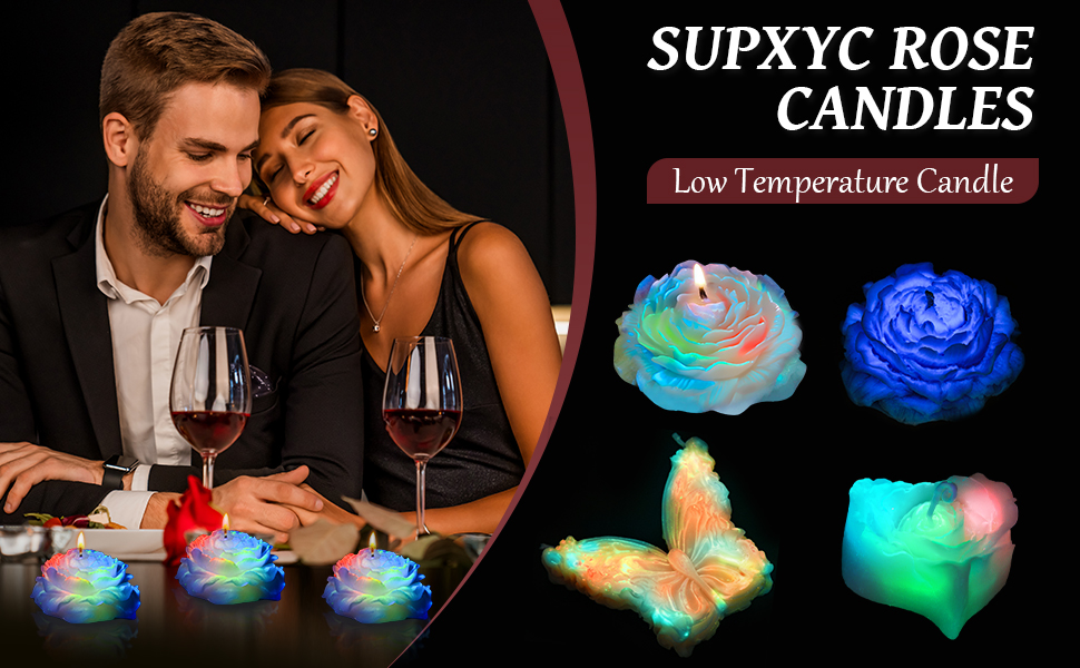 شكل زهرة، تغليف رائع: مجموعة شموع ذات درجة حرارة منخفضة مكونة من 4 قطع، باستخدام تقنية نحت فريدة من نوعها، شكل زهرة نابض بالحياة. صندوق الهدايا الرائع مناسب جدًا كهدية لشخص مهم آخر أو للعروسين.