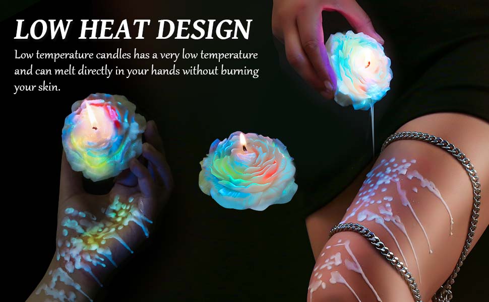 تصميم منخفض الحرارة: الشموع ذات درجة الحرارة المنخفضة مصنوعة من شمع الصويا منخفض الحرارة، وهو منخفض جدًا في درجة الحرارة ويمكن ذوبانه مباشرة في اليد دون حرق الجلد.