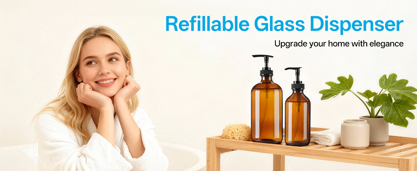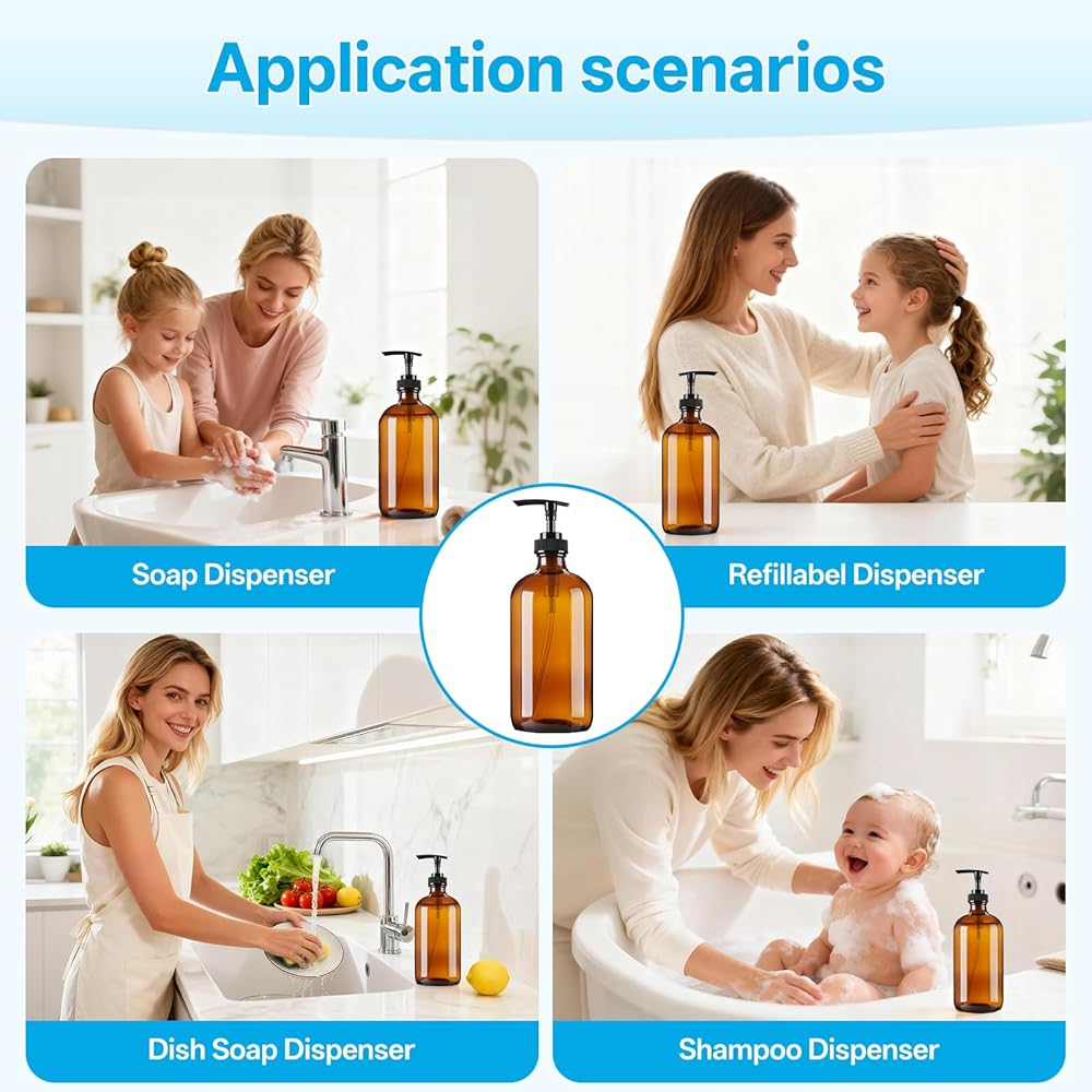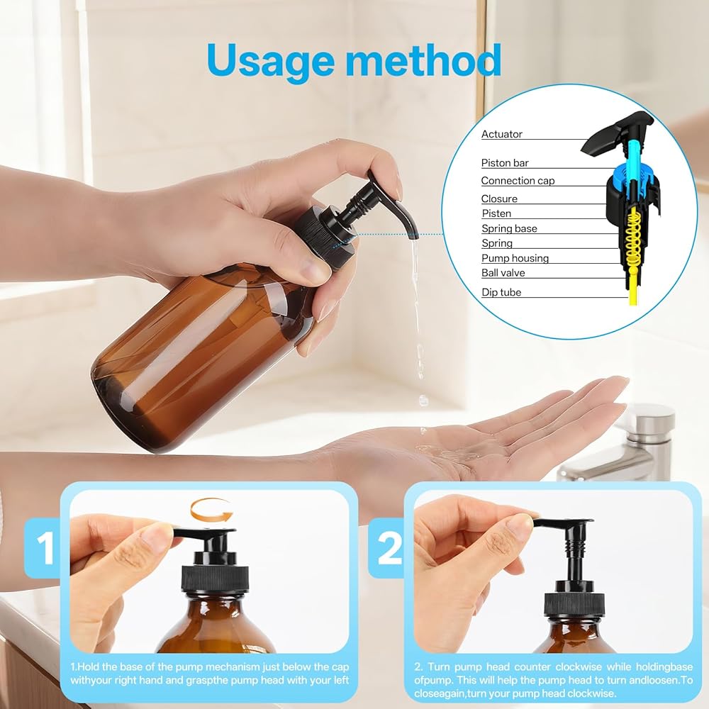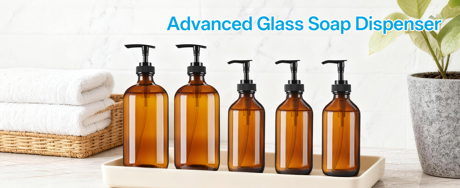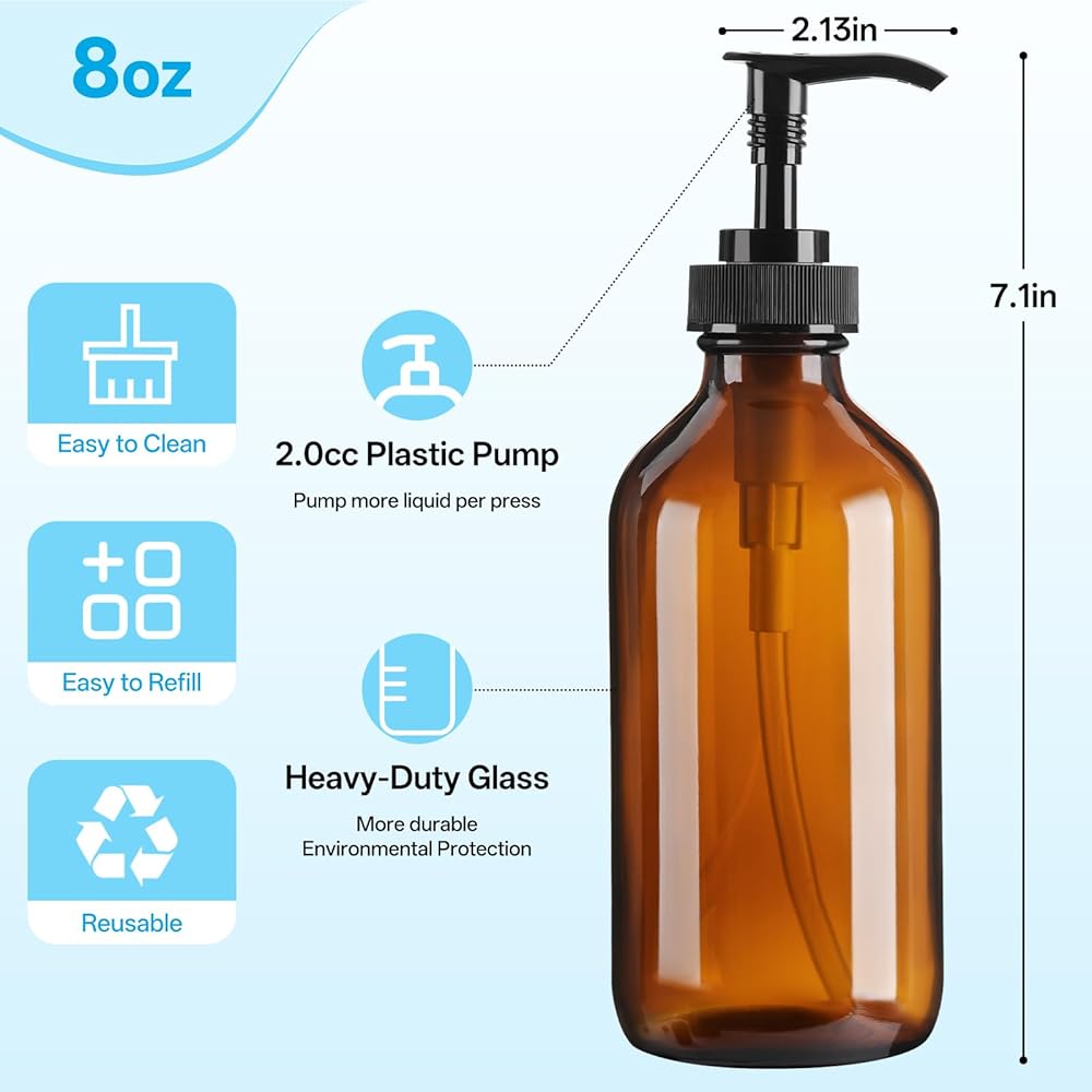 نظام توزيع زجاج كهرمان متعدد الاستخدامات مزدوج الاستخدام: مضخة مقاومة للتسرب وأغطية واقية محكمة الغلق: قم بالتبديل بسلاسة بين المضخة المانعة للتسرب المصممة بدقة للتوزيع اليومي والأغطية السوداء الآمنة للتخزين المحكم. تتحول مجموعة الزجاجات الكهرمانية الفاخرة هذه بوزن 8 أونصة إلى موزع صابون يد أنيق لزينة الحمام أو زجاجة صابون أطباق عملية لسطح المطبخ. منظمة. مصنوع من زجاج سميك الجدران عالي التحمل يضمن متانة دائمة وجاذبية ديكور منزلي متطورة لبيت المزرعة والديكورات الداخلية الحديثة والبسيطة