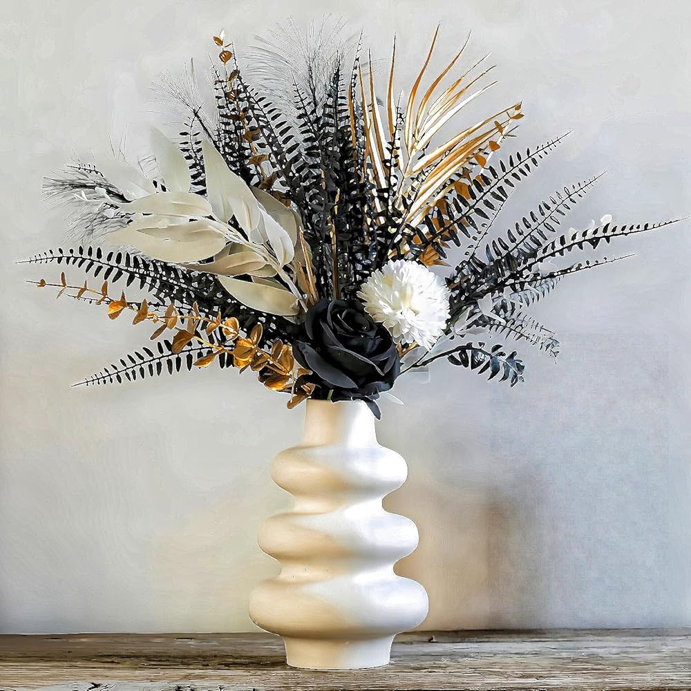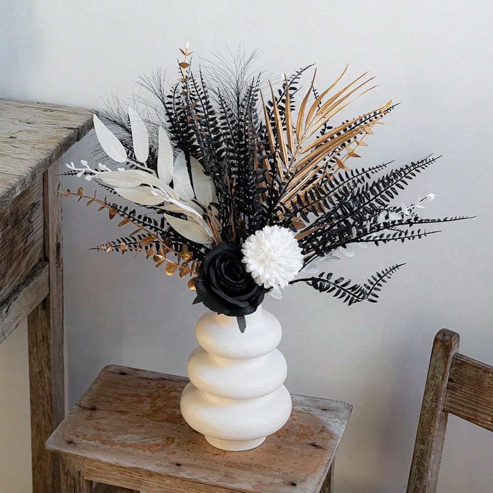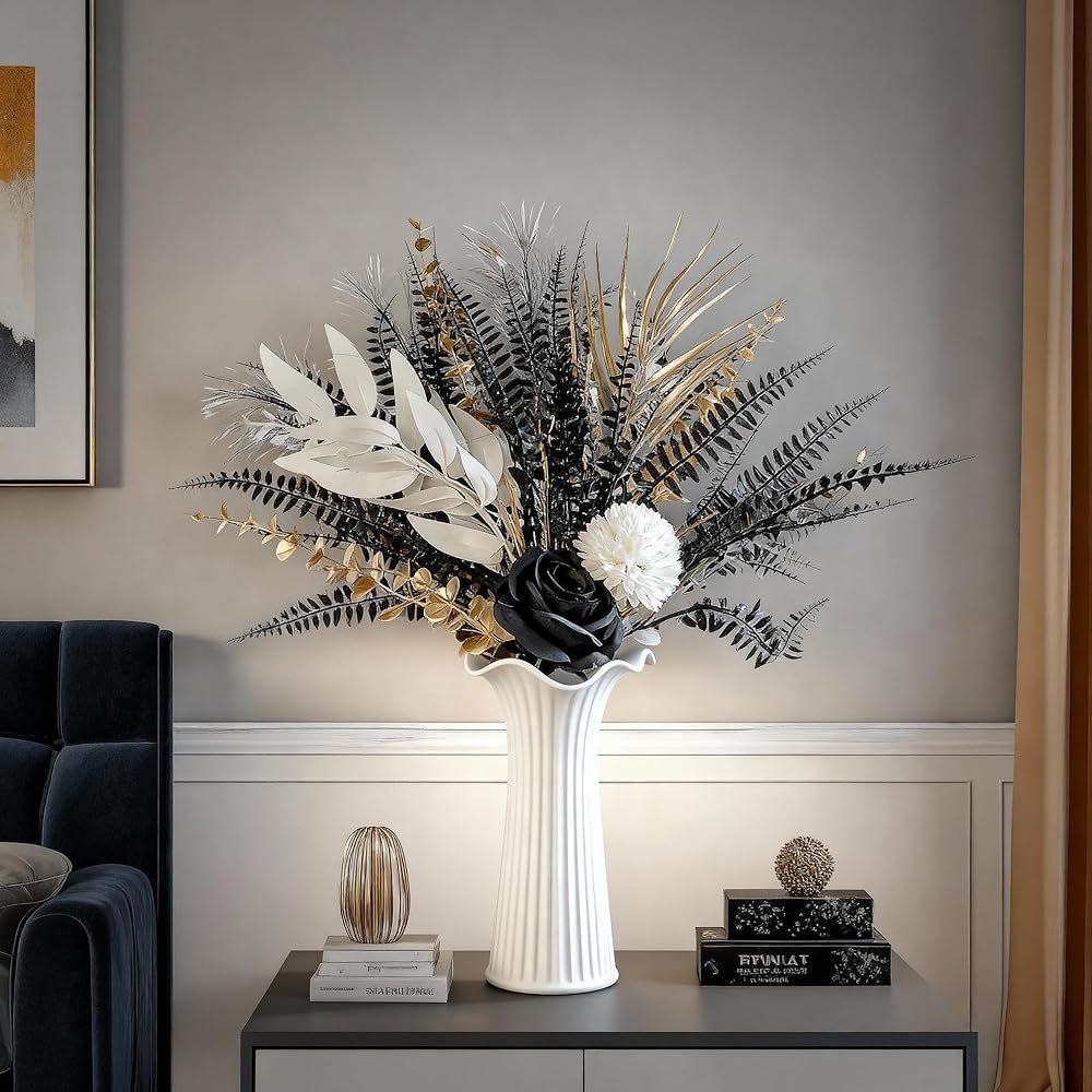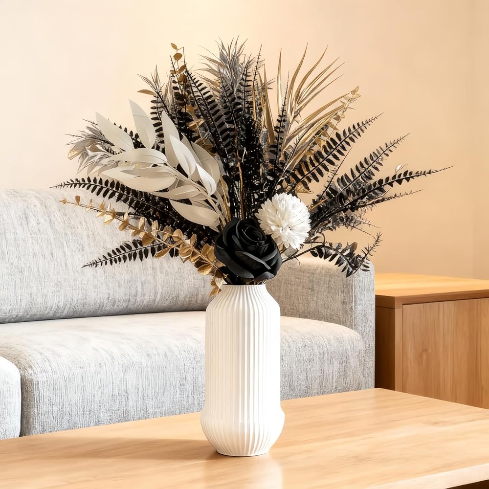 سوف تحصل على: باقة واقعية على طراز Dark Academy و Victorian Gothic، مكونة من اللون الأسود والأبيض والذهبي، بطول إجمالي 17 بوصة. المزهرية الموضحة في الصورة غير متضمنة في بيع المنتج، لذلك يمكنك الجمع بين هذه السيقان المذهلة مع الحاوية المفضلة لديك بحرية. قم بإنشاء تنسيق زهور فريد يناسب تمامًا أسلوبك الشخصي الفريد وجماليات منزلك.