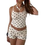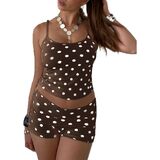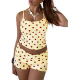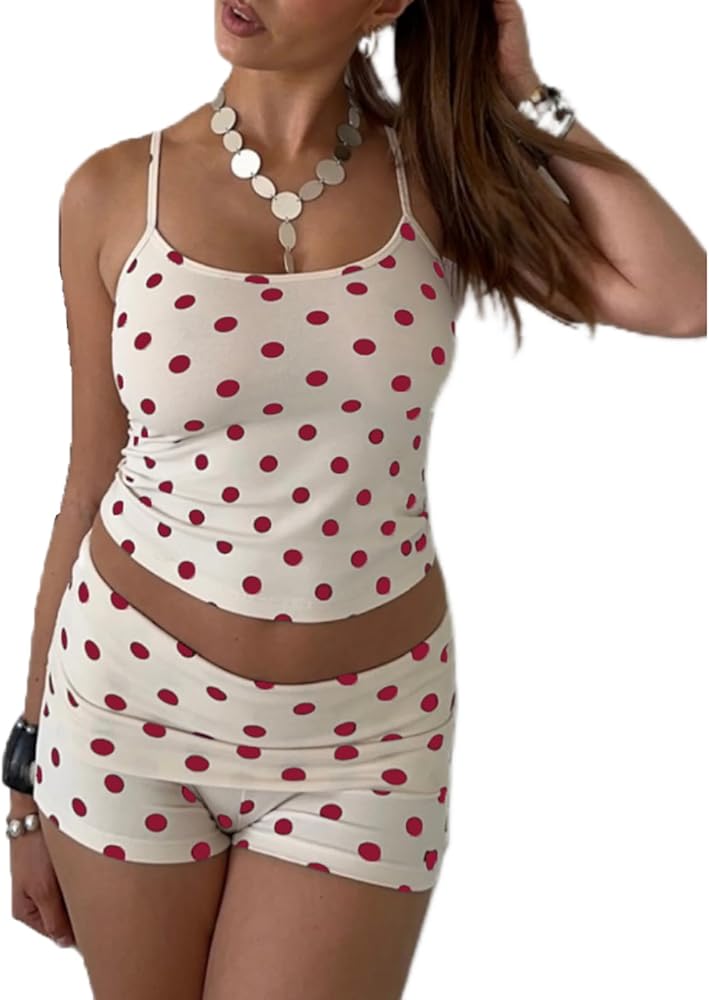 المزايا: شورت قصير عصري للمراهقين، قميص بدون أكمام بشريط سباجيتي، يتماشى مع السراويل القصيرة الصغيرة القابلة للطي المرنة، مجموعة شورتات Y2K للخروج، طقم صالة بدون أكمام، طقم بيجامة بدون أكمام، طقم بيجامة بدون أكمام
