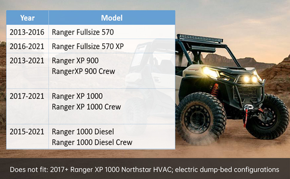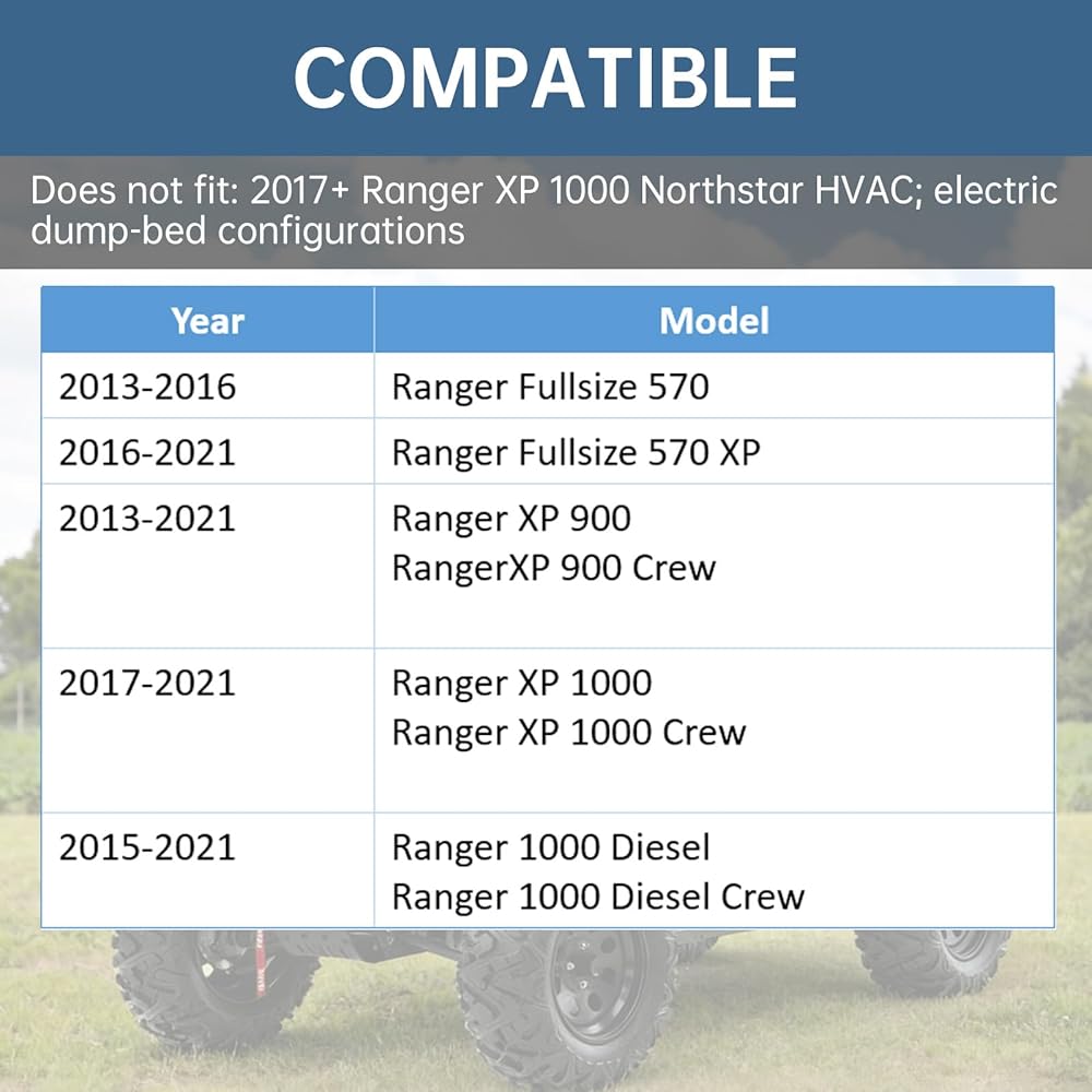• الإعداد: مجموعة رفع Ranger الخاصة بنا متوافقة مع موديلات Polaris Ranger 570 Fullsize وRanger XP 570 وRanger XP 900 وRanger XP 1000 كاملة الحجم. الاستثناءات: لا تناسب إصدار Ranger XP 1000 Northstar HVAC لعام 2017 والأحدث أو الموديلات المزودة بسرير تفريغ كهربائي