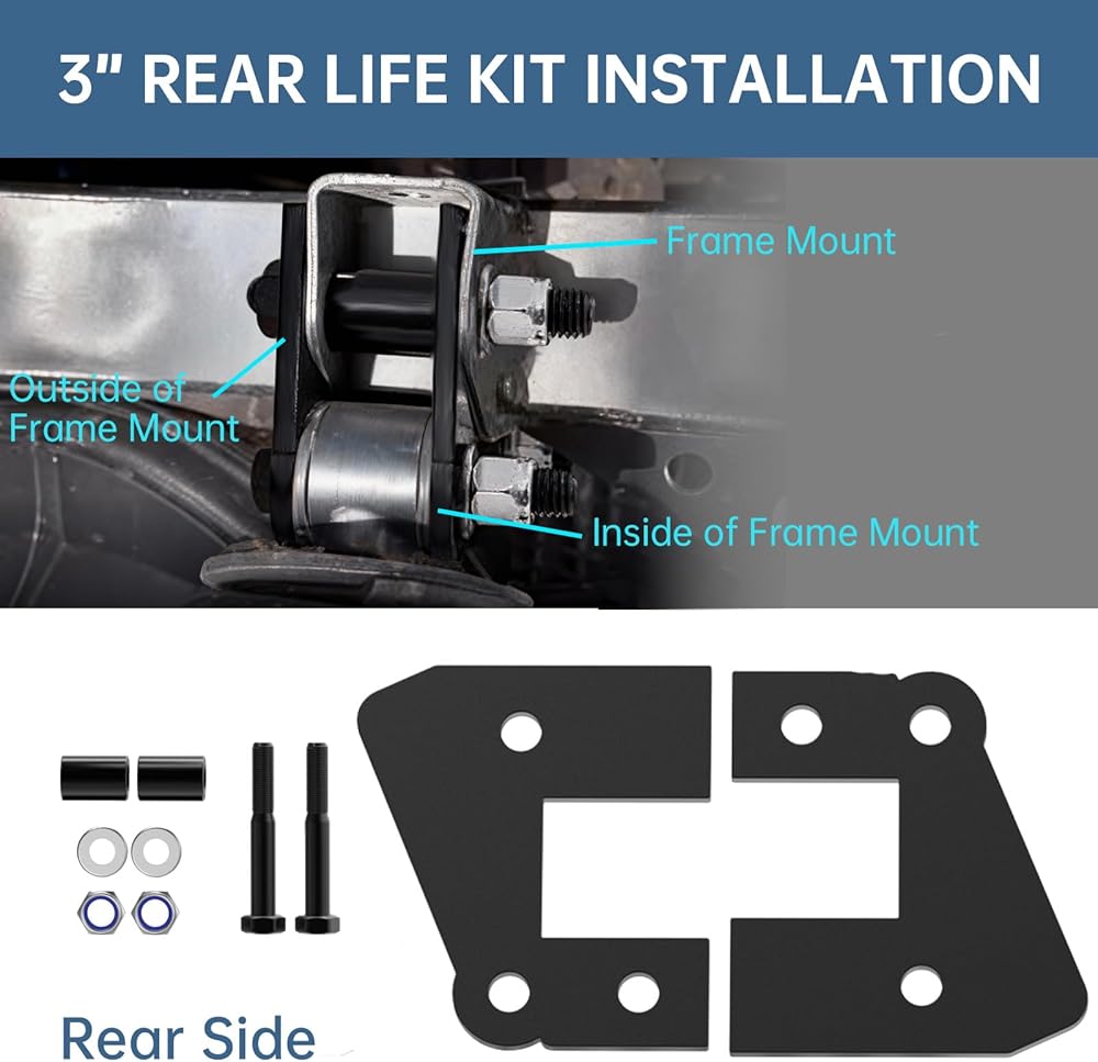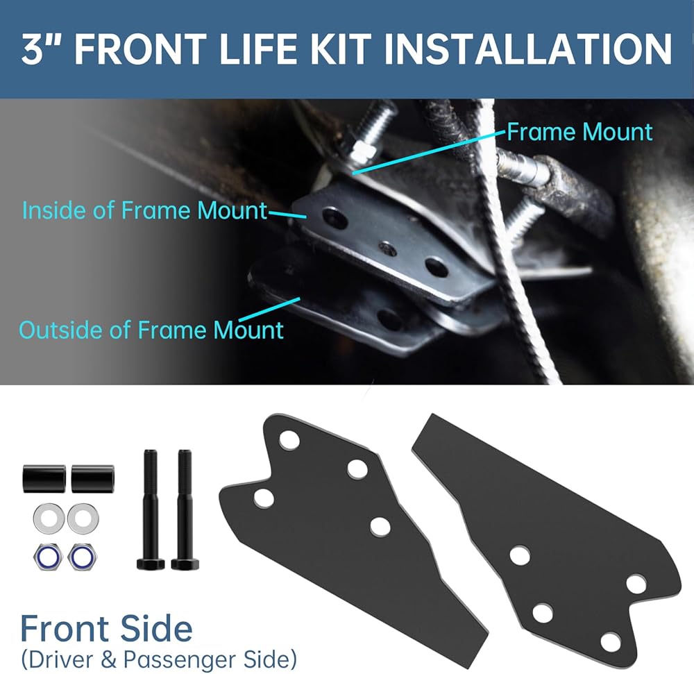 • هيكل ممتاز للقطع بالليزر باستخدام الحاسب الآلي: تم تصنيع مجموعة الرفع ذات الدعامة الأمامية والخلفية رينجر مقاس 3 بوصات من الفولاذ عالي الكربون مع تقنية القطع بالليزر CNC الدقيقة، مما يضمن ملاءمة مثالية وأقصى قدر من الثبات. يوفر الهيكل الفولاذي الكربوني عالي التحمل مقاومة ممتازة للصدمات وخصائص مضادة للتشوه، بينما يمنع طلاء المسحوق الأسود الأكسدة والصدأ لمتانة طويلة الأمد