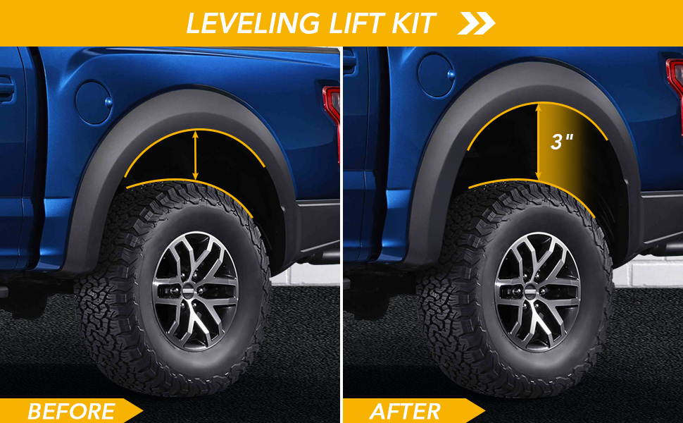 【رفع خلفي 3 بوصات】 تشتمل مجموعة رفع التسوية الخلفية مقاس 3 بوصات على كتلتي رفع، ومسمارين على شكل حرف U للخدمة الشاقة، وغسالات، وأجهزة، مصممة لرفع التعليق الخلفي لشاحنتك وتحسين الموقف والخلوص الأرضي. يرجى ملاحظة أن سُمك الفاصل لا يساوي ارتفاع الرفع النهائي - قد يختلف الرفع الفعلي اعتمادًا على هندسة التعليق.