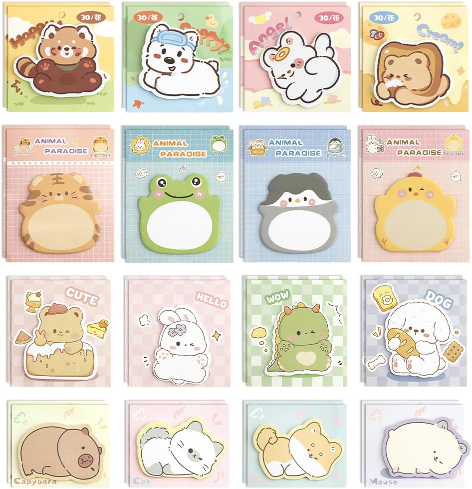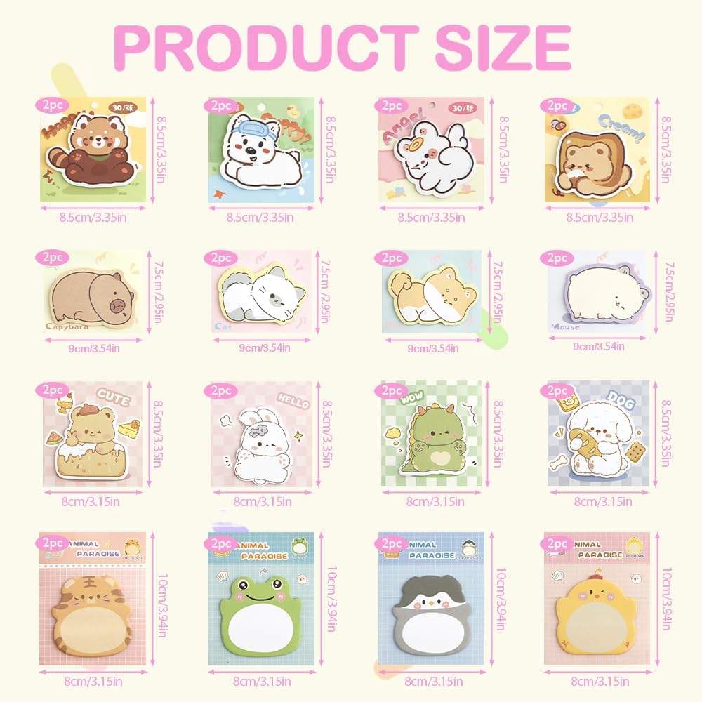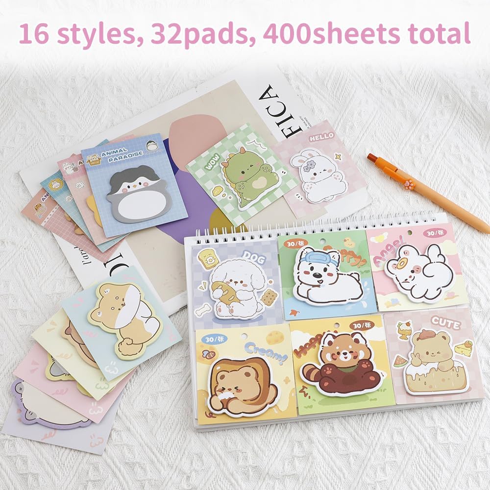 32 وسادة 400 ورقة ملاحظات لاصقة لطيفة، ملاحظات لاصقة على شكل حيوانات كرتونية كاواي، ملاحظات ذاتية اللصق، مجموعة ملاحظات لاصقة صغيرة، هدايا ملاحظات على شكل حيوانات للطلاب، لوازم مكتب المنزل والمدرسة