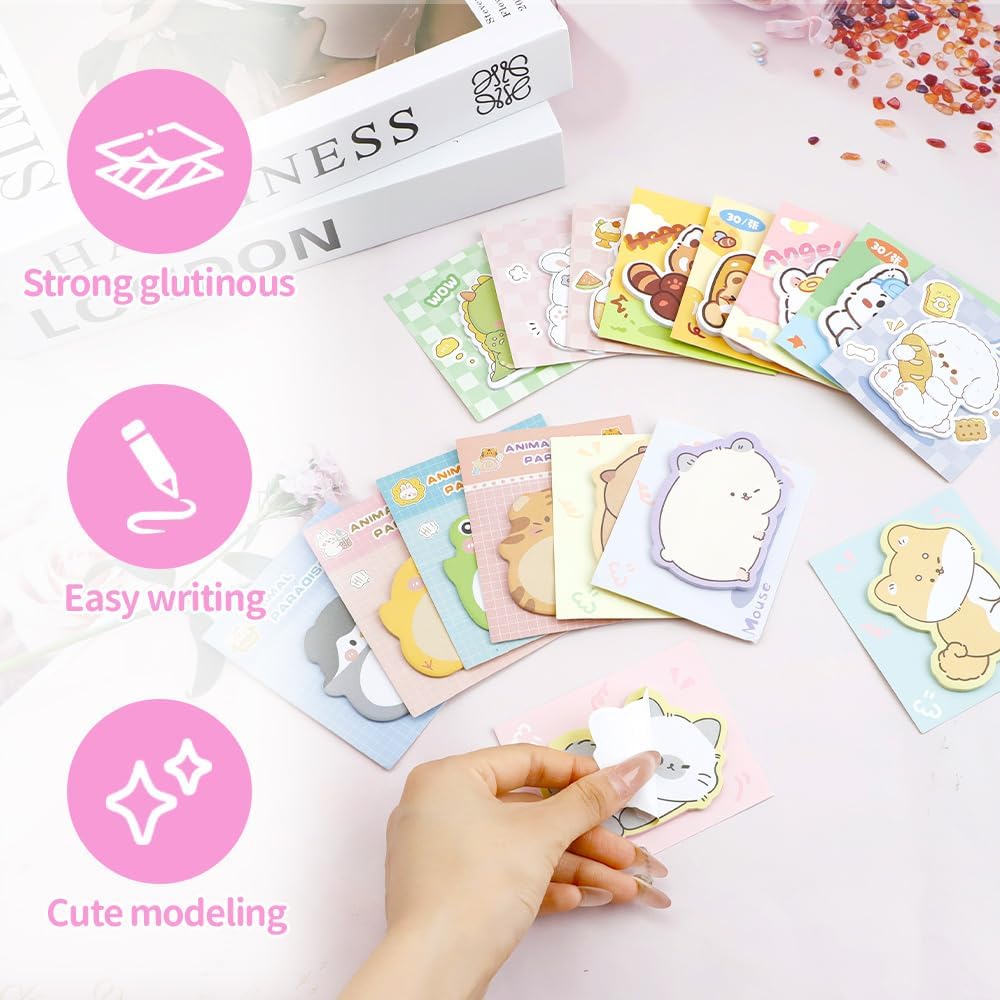 Cute Cartoon Animal Sticky Notes-Adorable 16-Animal Design Set/Easy Peel & Stick Functionality
