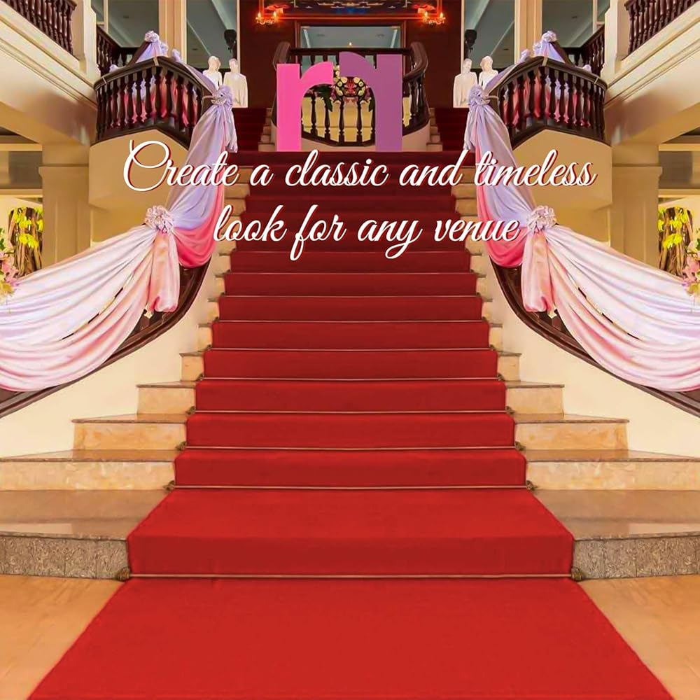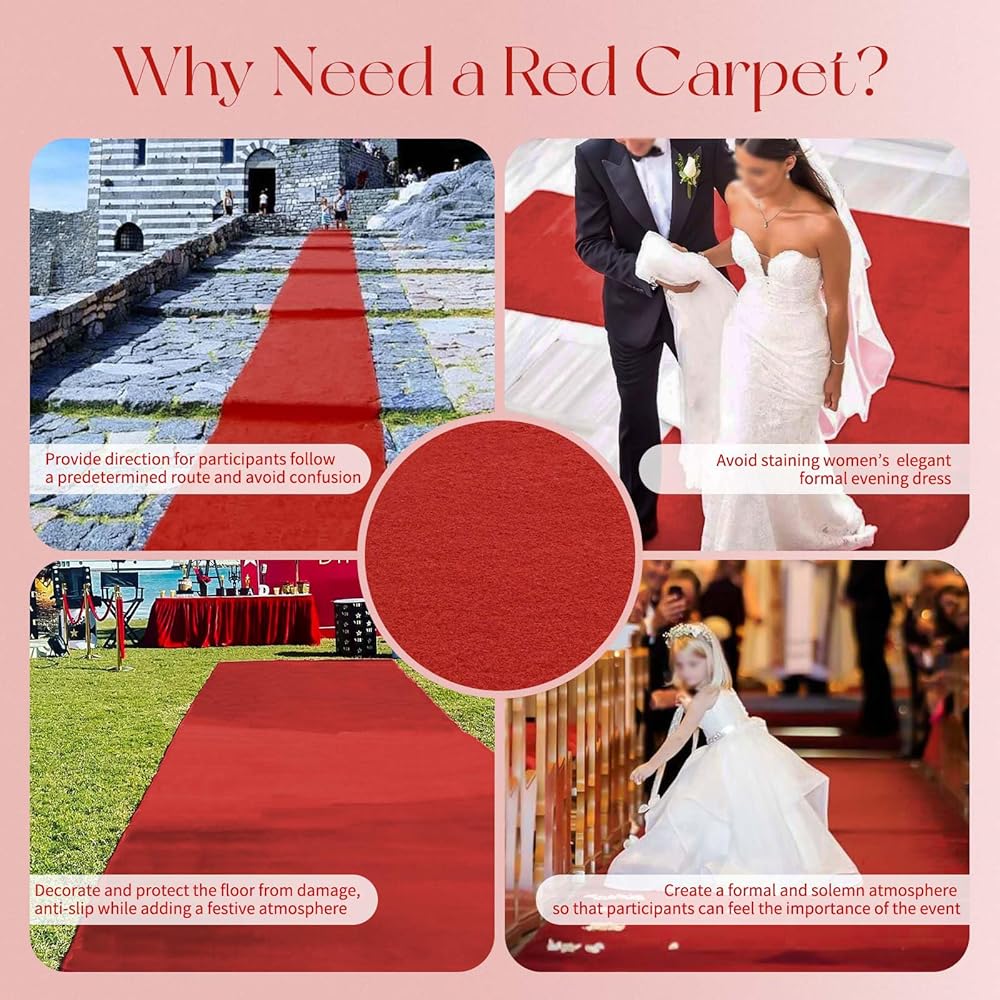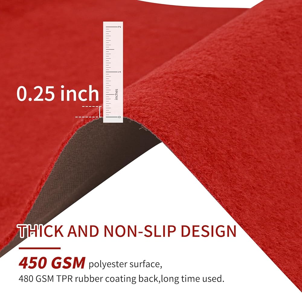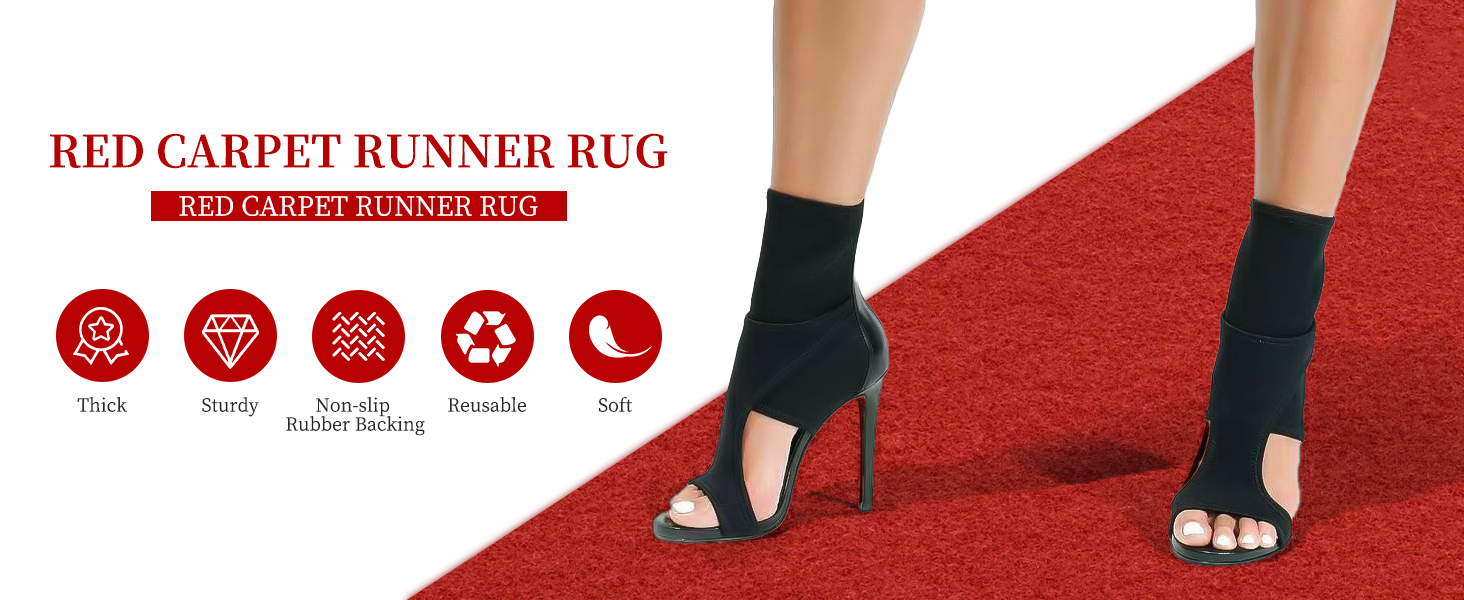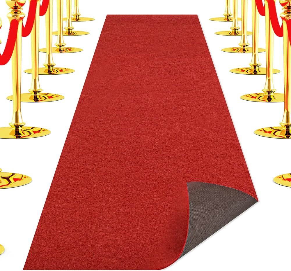 لماذا تحتاج إلى عداء السجادة الحمراء ذو الجودة الأفضل؟ يتميز مفرش السجاد الأحمر بسمك 0.25 سم بحواف مقصوصة بشكل أنيق، وألوان زاهية، ومصنوع من أسطح ألياف البوليستر القوية والسميكة بوزن 450 جرامًا في المتر المربع وطبقة خلفية من المطاط اللدن حراريًا المقاوم للانزلاق والمقاوم للماء بوزن 480 جرامًا في المتر المربع. ويمكنك قص السجاد بأي شكل أو حجم حسب احتياجاتك. لا يحتاج مفرش السجاد الأحمر السميك هذا إلى شريط لتثبيت السجاد على الأرض، فهو لن ينزلق أو ينزلق على الأرض أو الأسطح الزلقة، ويبقى ثابتًا وقبضة قوية للغاية، ولن تتجعد الحواف، ويبدو أكثر احترافية وفخامة، مما يمنح ضيوفك تجربة تشبه نجوم السينما.