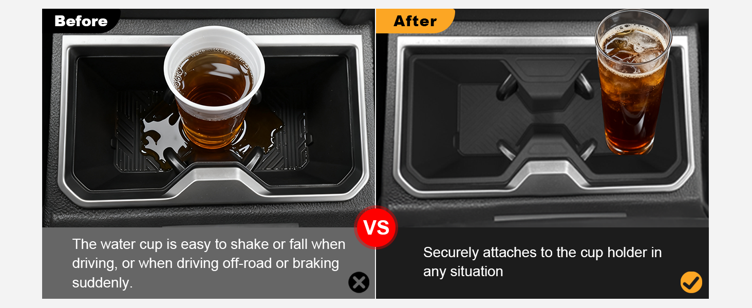 • تطابق مثالي: تم تصميمه بدقة ليتوافق مع حامل أكواب وحدة التحكم المركزية لزخارف Toyota 4Runner 2025-2026. يتم تركيبه في ثوانٍ بدون أدوات - ما عليك سوى وضعه في فتحة حامل الأكواب الأصلية. يزيل الإحباط الناتج عن حاملات الأكواب العامة غير المناسبة والتي تتحول أو تفشل في التوافق مع الجزء الداخلي لسيارتك.