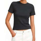طول قصير جذاب ولمسة نهائية نظيفة: مصمم ليصل إلى الخصر فقط، يتيح لك هذا القميص القصير إظهار لمسة من الجلد دون الشعور بالتعرض الشديد. توفر الرقبة الدائرية المحسنة والحواشٍ ذات الخياطة الضيقة مظهرًا أنيقًا وغير ضخم تحت الطبقات، مما يجعلها الأساس المثالي لأي ملابس
