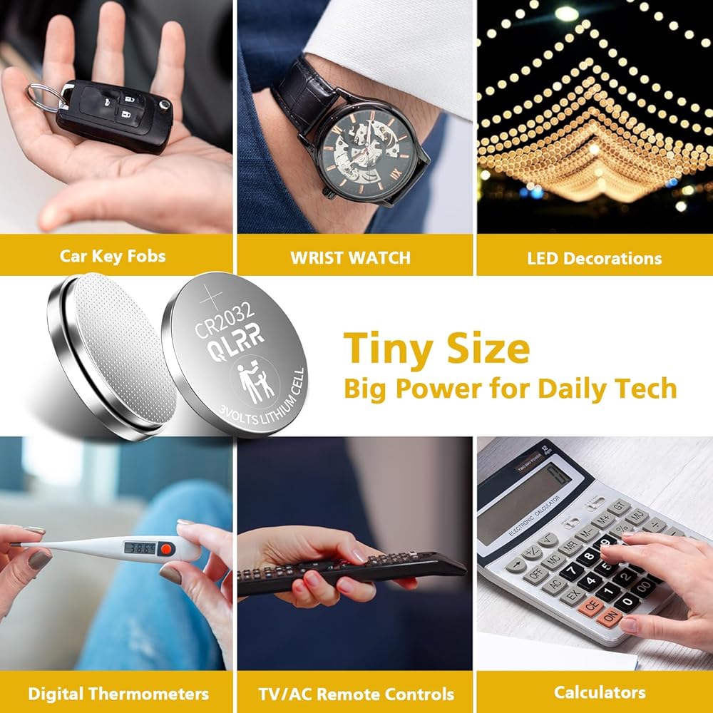 متوافقة على نطاق واسع: تناسب هذه البطارية الخلوية التي تعمل بالعملة المعدنية 2032 مجموعة من الأجهزة اليومية - بدءًا من مفاتيح السيارة وعلامات الهواء والأدوات المنزلية الذكية وحتى الساعات وموازين المطبخ وأجهزة التحكم عن بعد والأجهزة الطبية والألعاب. إنه الخيار الموثوق لجميع أجهزتك الإلكترونية الصغيرة.