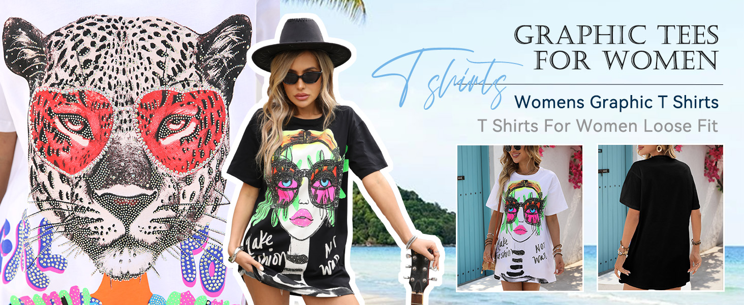 المقاس: تي شيرتات برسومات مرحة للسيدات، فضفاضة، متوفرة بأربعة مقاسات، يرجى الرجوع إلى جدول المقاسات لاختيار المقاس المناسب للحصول على مظهر مريح وكاجوال