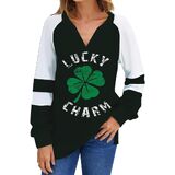 قمصان نسائية ليوم القديس باتريك بأكمام طويلة: قمصان لطيفة ومضحكة لعيد القديس باتريك للسيدات، أكمام طويلة مخططة، تصميم أيرلندي للسيدات، قميص كلاسيكي فضفاض مناسب مع نبات النفل، نسيج ناعم جدًا. أزياء عيد القديس باتريك قميص