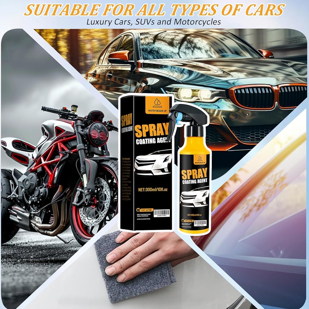 Car Coating Spray Kit, Nano Hydrophobic Ceramic Coating, Easy-to-Spray Auto Paint Protection, Includes Microfiber Cloth for Vehicle Shine & Protection-300ml