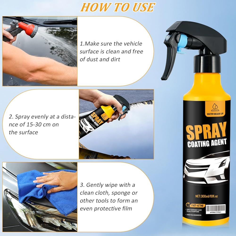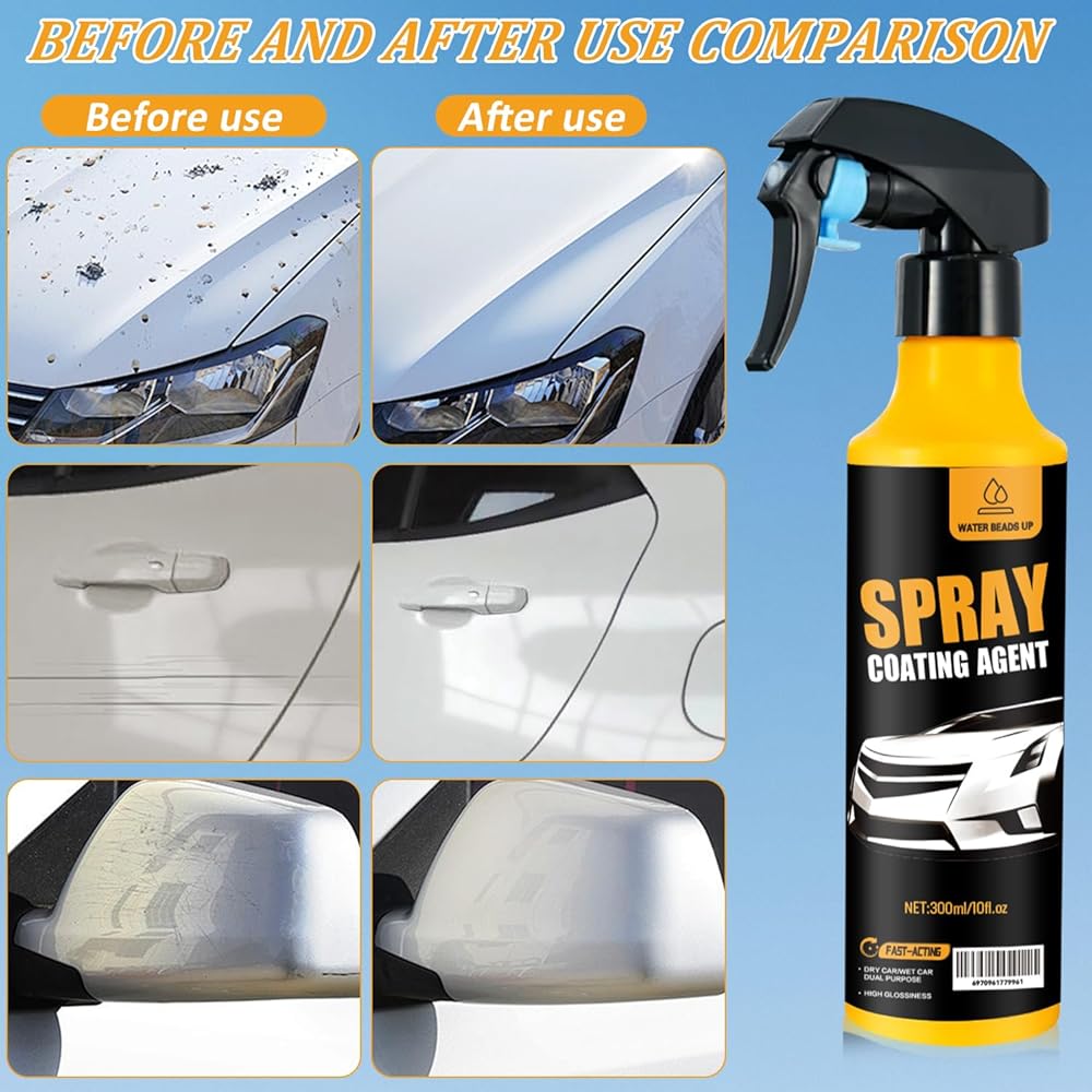 【Easy No-Wash】: This premium car coating agent spray is easy to use - just spray, wipe and it works instantly. It effectively protects your car while removing stubborn stains and water spots from your car's surface, making it easy to care for and saving you time and money