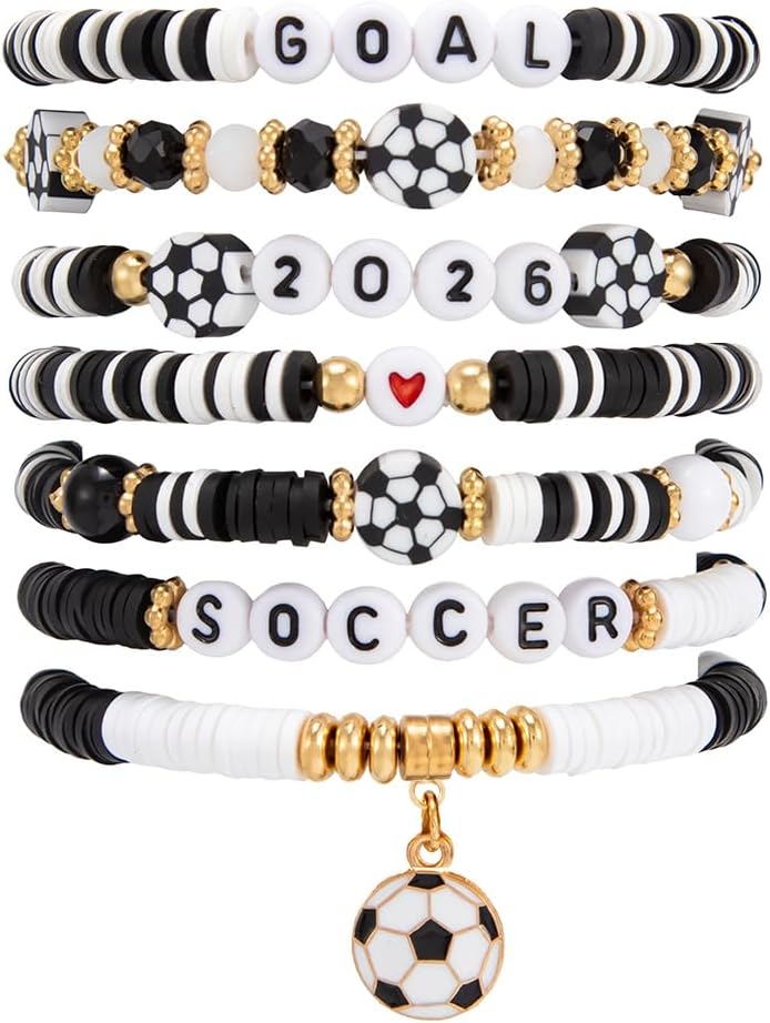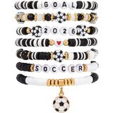 Show your passion for soccer with this stylish and trendy clay friendship bracelet. Perfect for game day celebrations and everyday wear, this stackable beaded bracelet makes a wonderful accessory for soccer enthusiasts, team coaches, sports moms, and players alike. The versatile design features soccer-themed clay beads that can be paired with other bracelets for a personalized look. Whether you're cheering from the sidelines or celebrating the 2026 games, this bracelet adds a sporty touch to any outfit. Its unisex design makes it suitable for both women and men, and it's an ideal choice for sports team accessories or party favors. The beaded construction offers both style and durability, making it a meaningful accessory for anyone who loves the beautiful game.