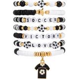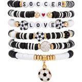 • SOCCER THEMED DESIGN: Stylish clay beaded bracelet featuring bold black & white beads–featuring soccer-inspired elements, perfect for showing team spirit and passion for the game on and off the field