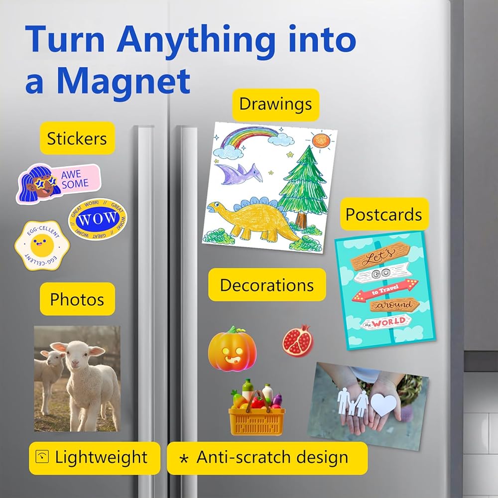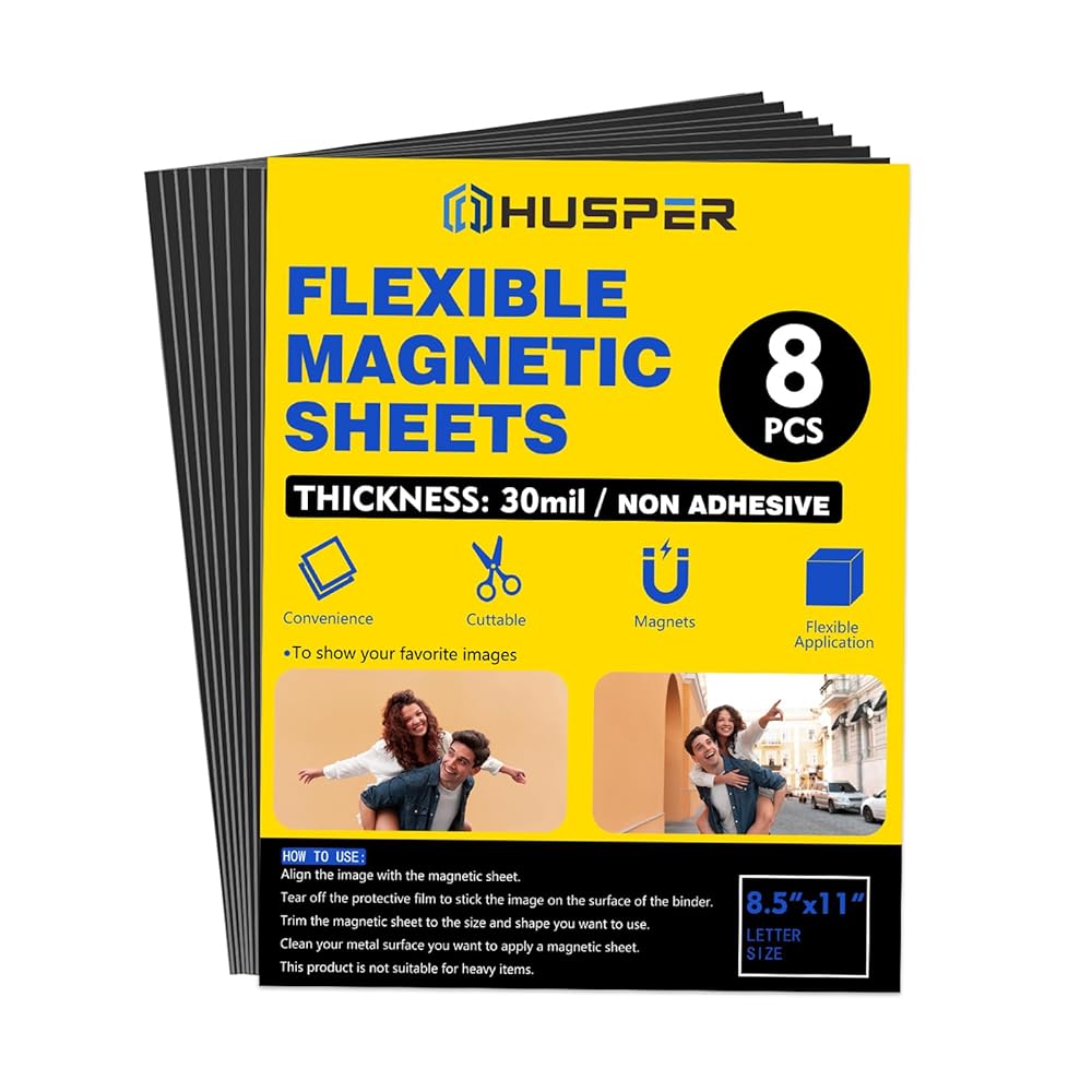 Unleash your creativity with the ultimate blank canvas for your DIY projects! HUSPER Non-Adhesive Magnetic Sheets are designed for crafters, organizers, and makers who demand versatility and quality. This value pack includes eight large-format sheets (8.5 x 11 inches) made from a durable, flexible 30-mil thick magnetic vinyl. Unlike adhesive-backed sheets, our non-adhesive version gives you complete creative control. You can glue, tape, or laminate your own materials—such as paper, photos, cardstock, or fabric—onto the magnetic sheet to create truly custom magnets. Perfect for organizing craft dies, creating custom signs, or making fun fridge magnets, these sheets are easy to cut with scissors or a craft cutter, offering endless possibilities for your next project.