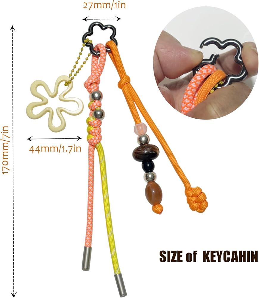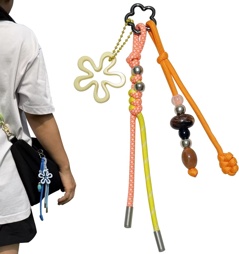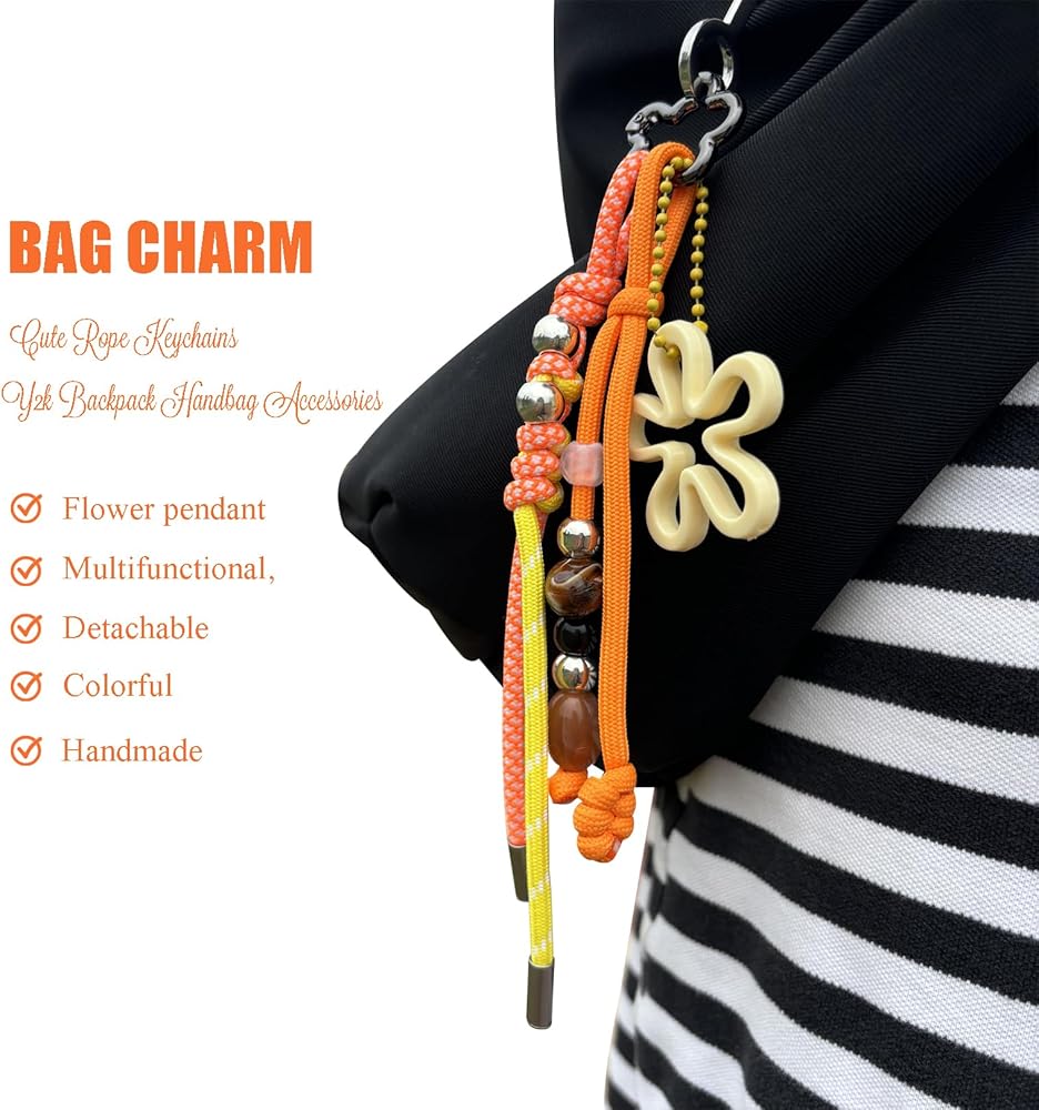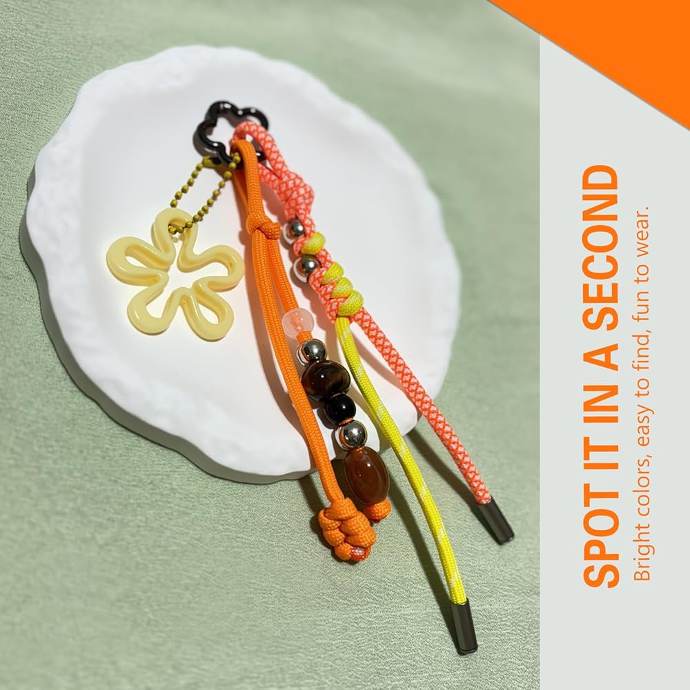 • Multi-Charm Set with Versatile Use - This colorful accessory set includes multiple detachable charms—a braided paracord keychain, a flower pendant, and a beaded charm. Each piece can be used separately as a keychain or as decoration for your backpack, tote bag, purse, phone, or even camera.
