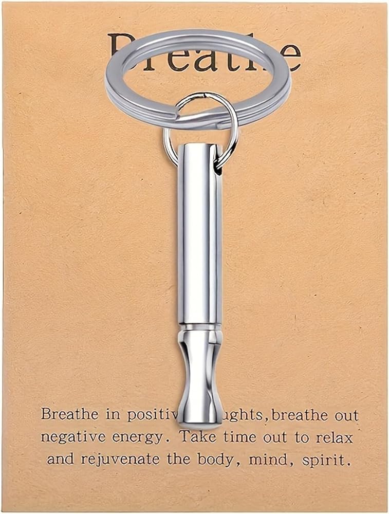 أكثر قابلية للتطبيق: تبدو وكأنها صفارة، ولكن صفارة القلق صامتة، ومدمجة مع Fidget Spinner وBraille Code الذي يتهجى كلمة "Breathe". تساعدك على الإقلاع عن التدخين، وتخفيف القلق، والتنفس اليقظ، وتهدئة الذعر.