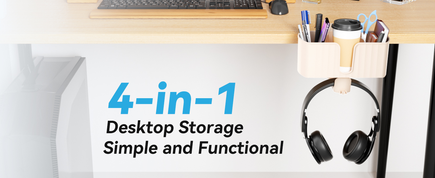 تصميم حصري 4 في 1 - يحمل منظم المكتب 4 في 1 سماعات الألعاب أو الصوت الخاصة بك، بالإضافة إلى صندوق تخزين سطح المكتب متعدد الاستخدامات للأكواب والهواتف المحمولة والأجهزة اللوحية والأقلام وغيرها من الضروريات اليومية. قم بتخصيص مساحة التخزين بناءً على احتياجاتك لإبقاء جميع الأساسيات في متناول يدك.