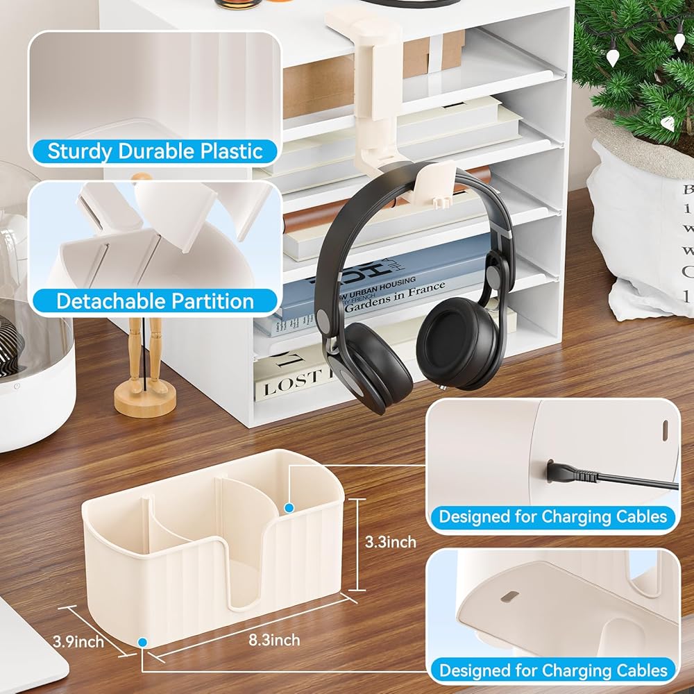 رفع مستوى الراحة واختيار الهدية المثالية - يعمل منظم المكتب 4 في 1 هذا على تبسيط روتينك اليومي: احتفظ بسماعات الرأس والأكواب والأجهزة والقرطاسية منظمة في مكان واحد، مع فتحات إدارة الكابلات للشحن بدون فوضى. إنها هدية مدروسة للاعبين أو العاملين في المكاتب أو الطلاب أو أي شخص يحب مساحة عمل مرتبة، حيث تمزج بين التطبيق العملي والتصميم الأنيق لجعل الحياة اليومية أسهل وأكثر متعة.