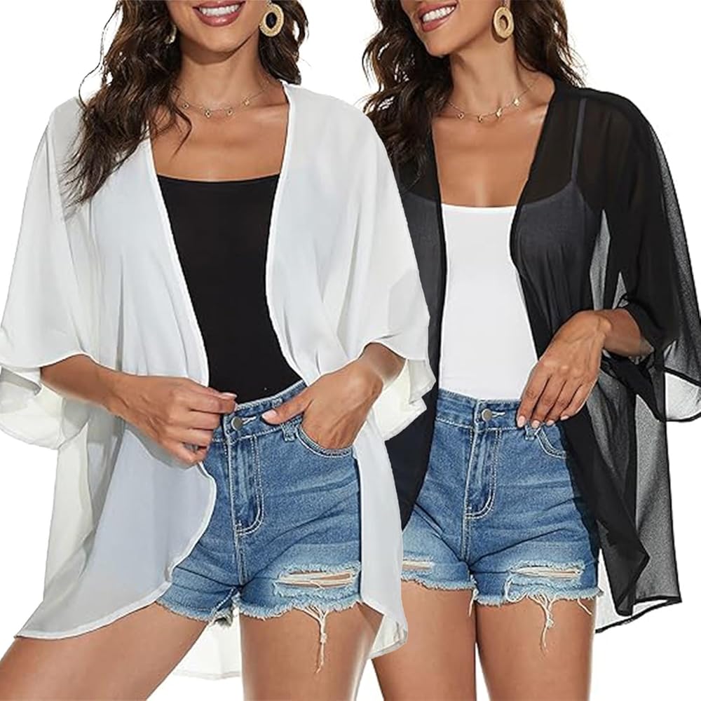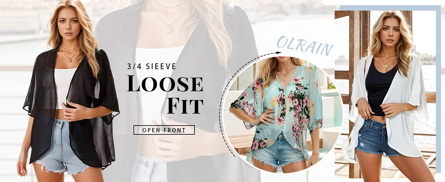 المواد: نسيج شيفون ناعم، مسامي وخفيف الوزن. سريع الجفاف ويبقى باردًا على الجلد. خفيف الوزن ومريح لتغطية طوال اليوم، مفتوح من الأمام، 3/4 كم، فضفاض. نوعية جيدة. جذابة للغاية، عصرية وقابلة للتنفس. يمكن ارتداؤه في الداخل للحماية من تكييف الهواء البارد، وفي الهواء الطلق في الطقس الحار لتوفير الحماية من أشعة الشمس