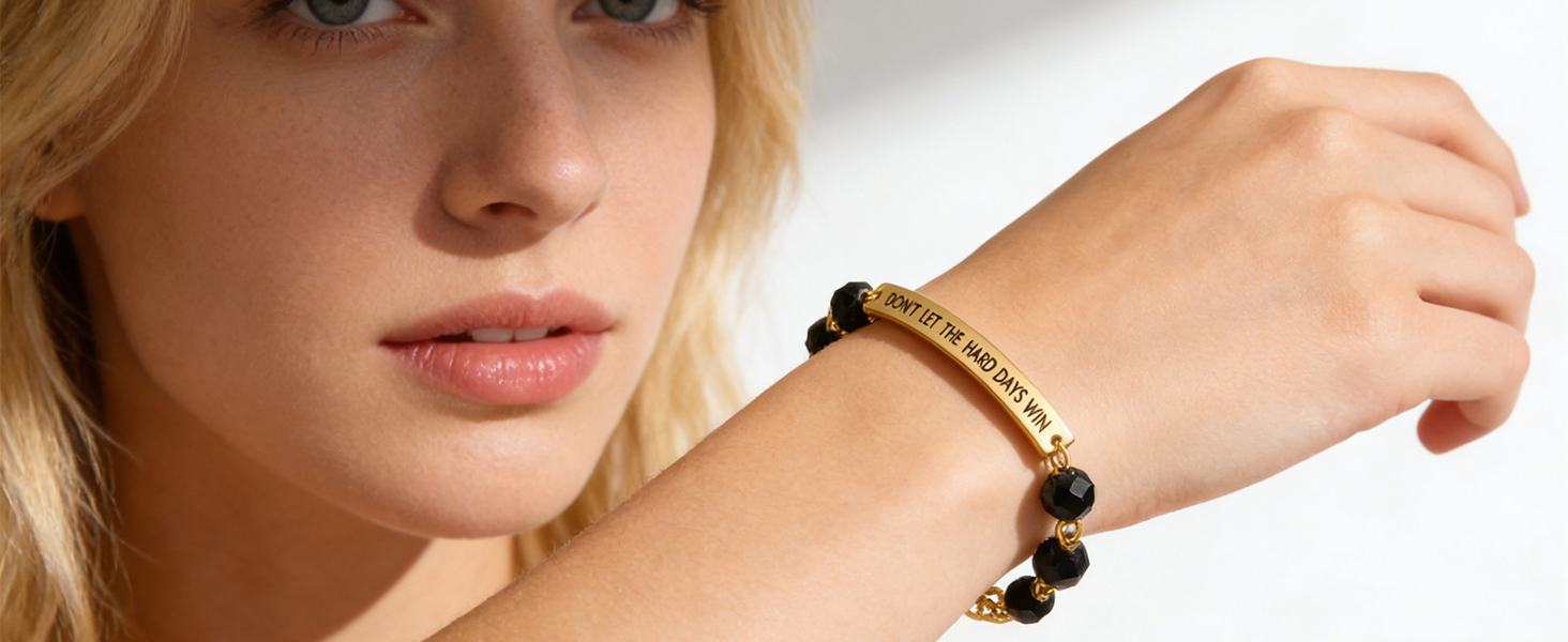 • VERSATILE STYLE: This engraved dont let the hard days win beaded bracelet is your perfect go-to for showcasing your unique personality. Rock it solo for a touch of understated class, or stack it with other pieces for a bolder, more "you" statement—either way, it's a definite head-turner. Its super versatile design goes flawlessly with everything from your favorite jeans to a sophisticated evening gown, making it ideal for everyday wear or those extra special occasions. The minimalist charm adds a refined, chic touch to any outfit.