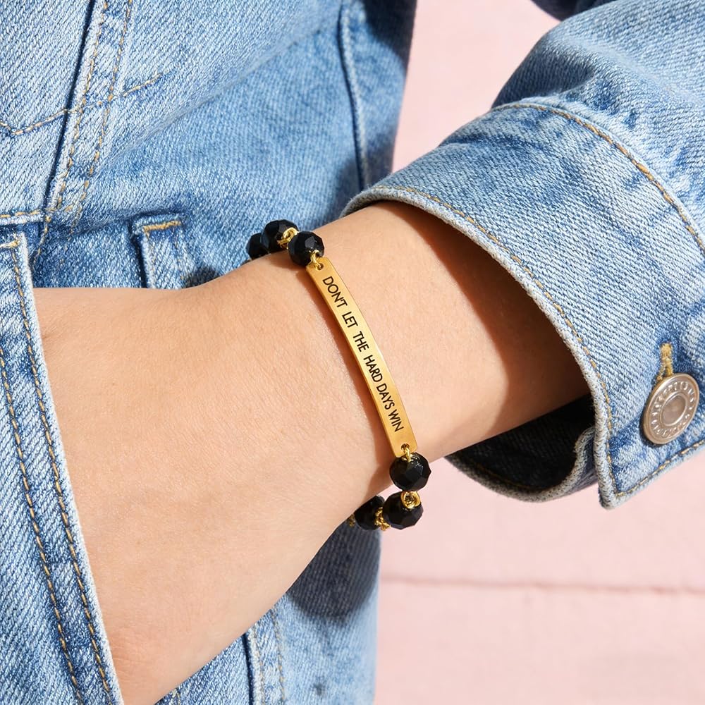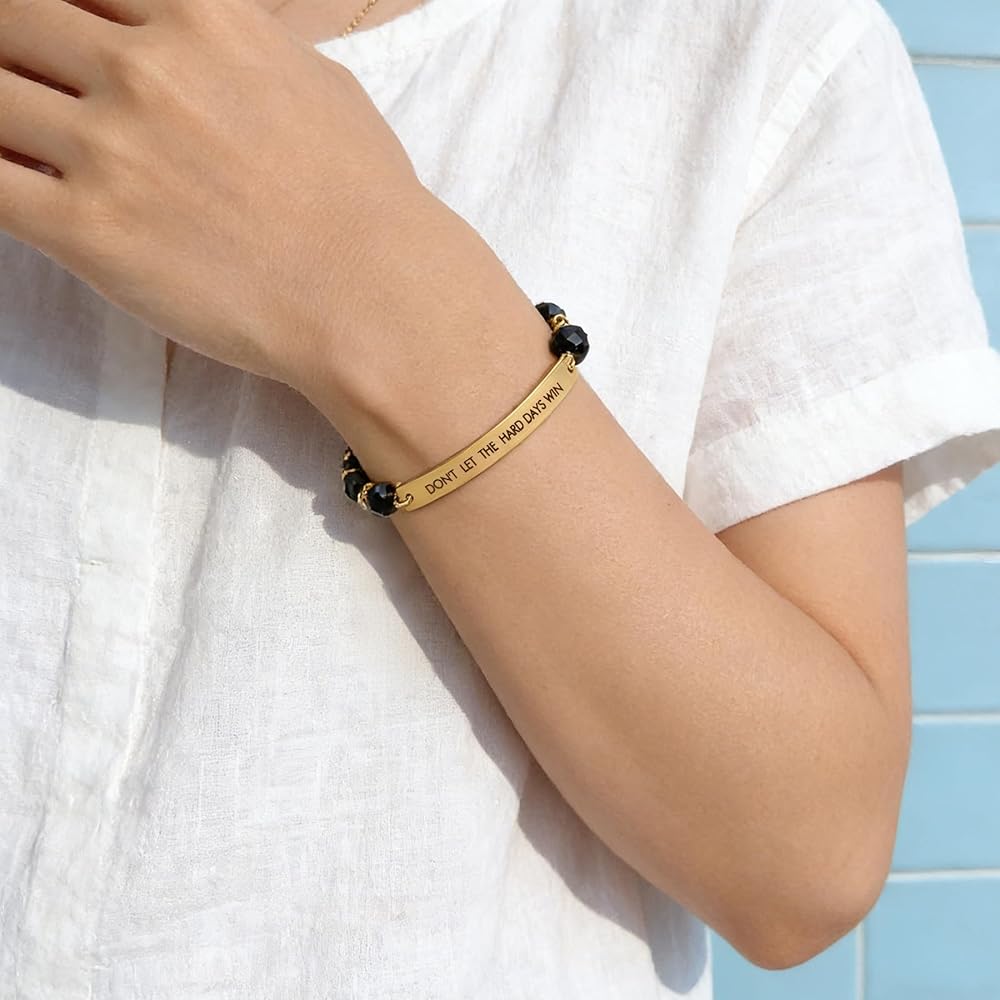 • EXQUISITE CRAFTSMANSHIP: Every single don't let the hard days win bracelet isn't just made; it's meticulously crafted. We utilize advanced engraving techniques to ensure that every delicate detail is captured with pinpoint precision. This isn't just about high quality; it's about creating a piece that truly shines with sophisticated artistry and refined elegance.